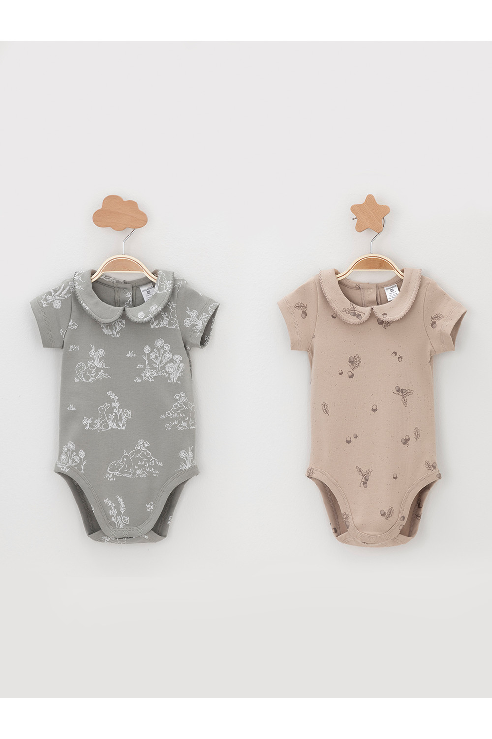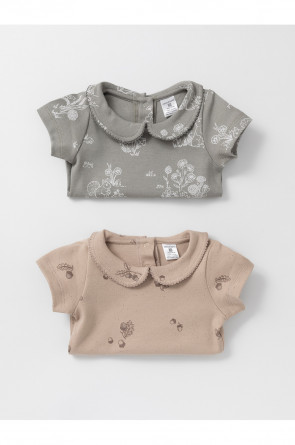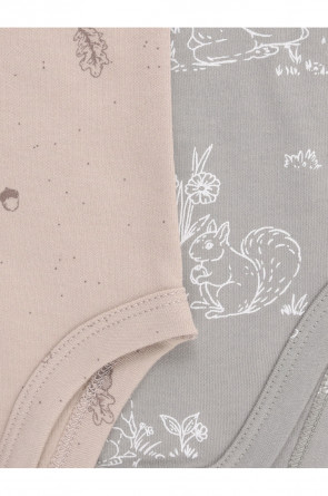 Боди для новорождённых из мягкого эластичного трикотажа, произведённого из натурального хлопка. В упаковке 2 шт. Застёгиваются на кнопки по низу изделий и на спинке. Оригинальная набивка выполнена из стойких гипоаллергенных текстильных красителей. Все трикотажные полотна производятся в соответствии с нормами швейцарского сертификата ЭкоТекс.