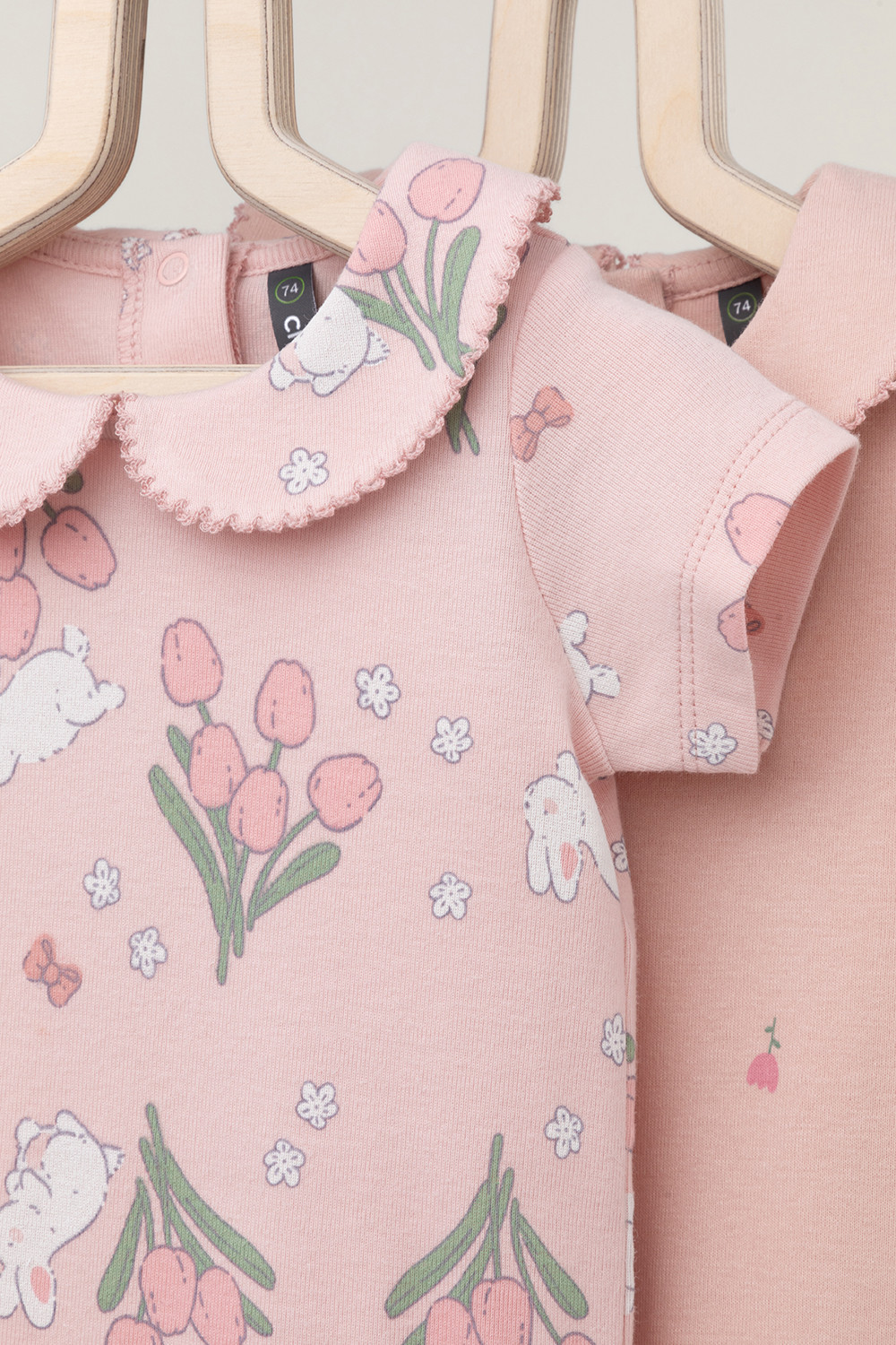 Боди для новорождённых из мягкого эластичного трикотажа, произведённого из натурального хлопка. В упаковке 2 шт. Застёгиваются на кнопки по низу изделий и на спинке. Оригинальная набивка выполнена из стойких гипоаллергенных текстильных красителей. Все трикотажные полотна производятся в соответствии с нормами Швейцарского сертификата ЭкоТекс.