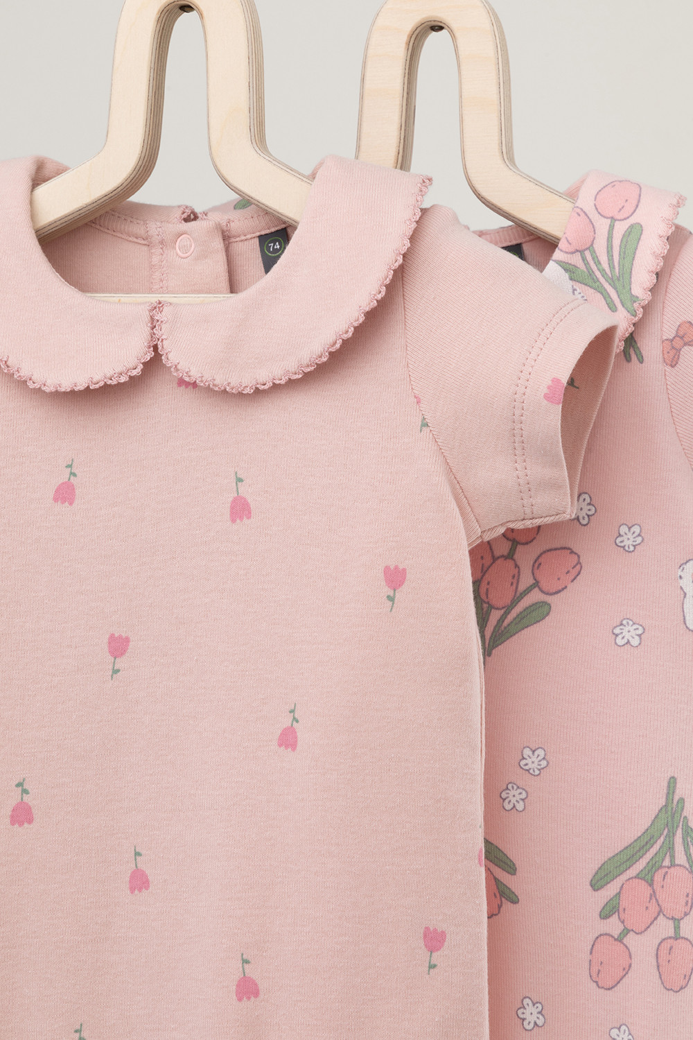 Боди для новорождённых из мягкого эластичного трикотажа, произведённого из натурального хлопка. В упаковке 2 шт. Застёгиваются на кнопки по низу изделий и на спинке. Оригинальная набивка выполнена из стойких гипоаллергенных текстильных красителей. Все трикотажные полотна производятся в соответствии с нормами Швейцарского сертификата ЭкоТекс.