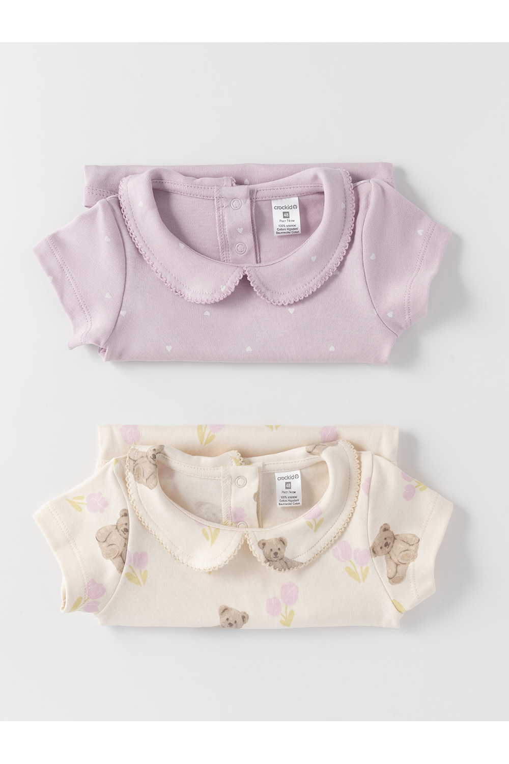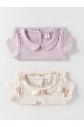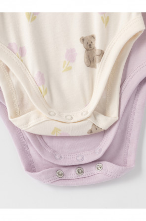 Боди для новорождённых из мягкого эластичного трикотажа, произведённого из натурального хлопка. В упаковке 2 шт. Застёгиваются на кнопки по низу изделий и на спинке. Оригинальная набивка выполнена из стойких гипоаллергенных текстильных красителей. Все трикотажные полотна производятся в соответствии с нормами швейцарского сертификата ЭкоТекс.