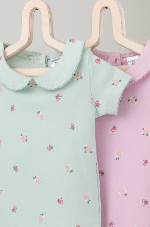 Боди для новорождённых из мягкого эластичного трикотажа, произведённого из натурального хлопка. В упаковке 2 шт. Застёгиваются на кнопки по низу изделий и на спинке. Оригинальная набивка выполнена из стойких гипоаллергенных текстильных красителей. Все трикотажные полотна производятся в соответствии с нормами Швейцарского сертификата ЭкоТекс.