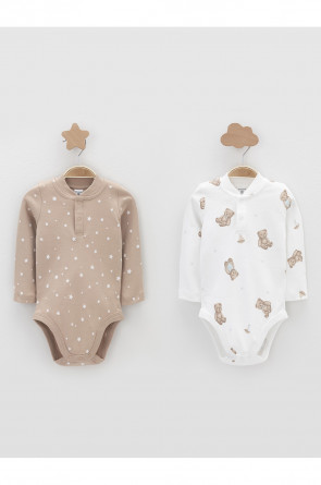 Боди для новорождённых из мягкого эластичного трикотажа, произведённого из натурального хлопка. В упаковке 2 штуки. Застёгиваются на кнопки спереди и по низу изделий. Оригинальная набивка выполнена из стойких гипоаллергенных текстильных красителей. Все трикотажные полотна производятся в соответствии с нормами швейцарского сертификата ЭкоТекс.