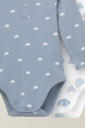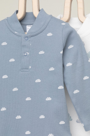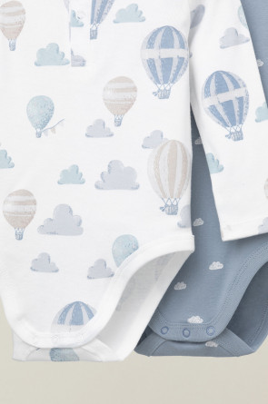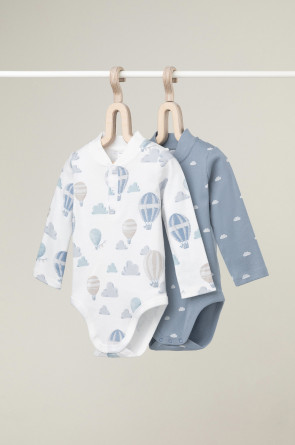 Боди для новорождённых из мягкого эластичного трикотажа, произведённого из натурального хлопка. В упаковке 2 штуки. Застёгиваются на кнопки спереди и по низу изделий. Оригинальная набивка выполнена из стойких гипоаллергенных текстильных красителей. Все трикотажные полотна производятся в соответствии с нормами Швейцарского сертификата ЭкоТекс.