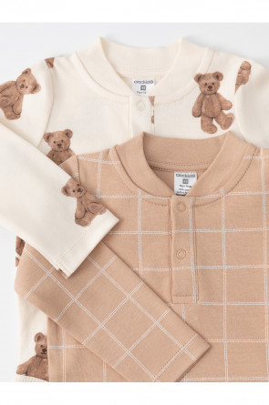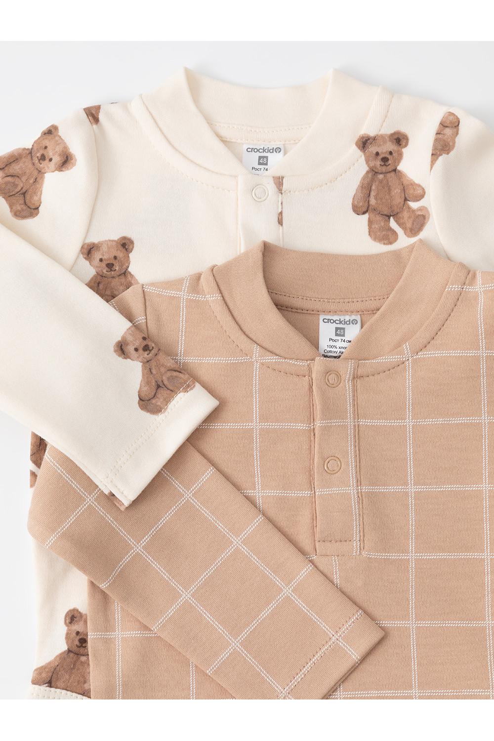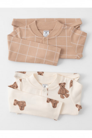 Боди для новорождённых из мягкого эластичного трикотажа, произведённого из натурального хлопка. В упаковке 2 штуки. Застёгиваются на кнопки спереди и по низу изделий. Оригинальная набивка выполнена из стойких гипоаллергенных текстильных красителей. Все трикотажные полотна производятся в соответствии с нормами швейцарского сертификата ЭкоТекс.