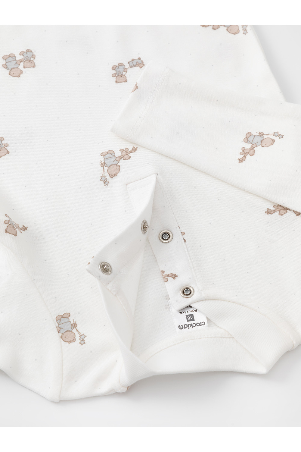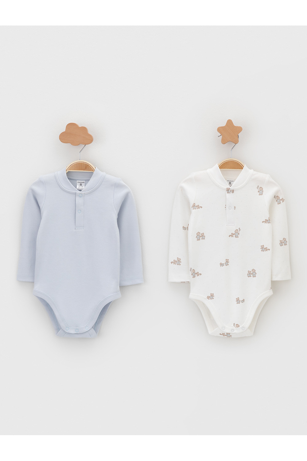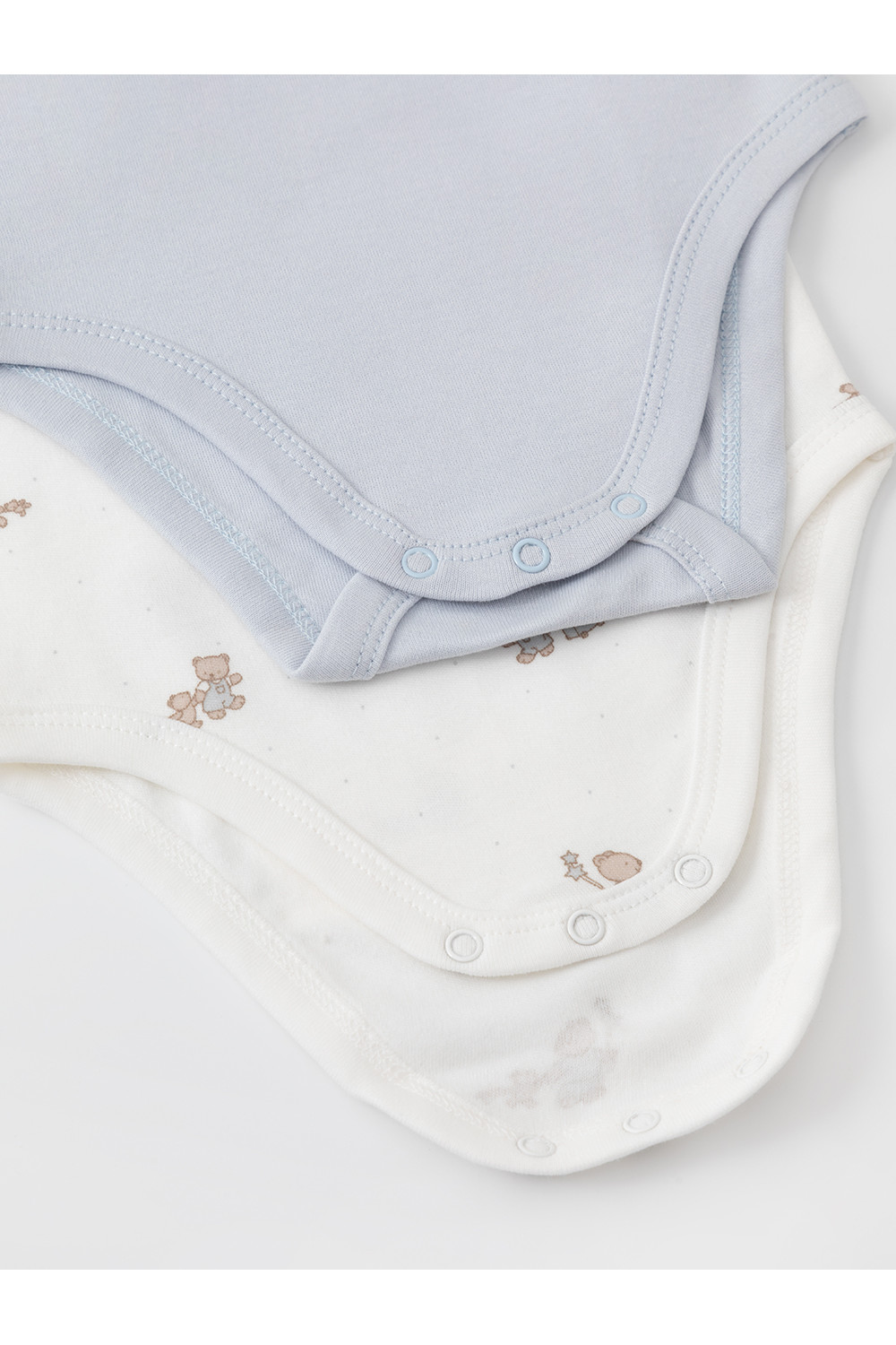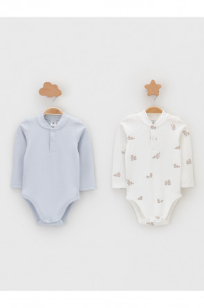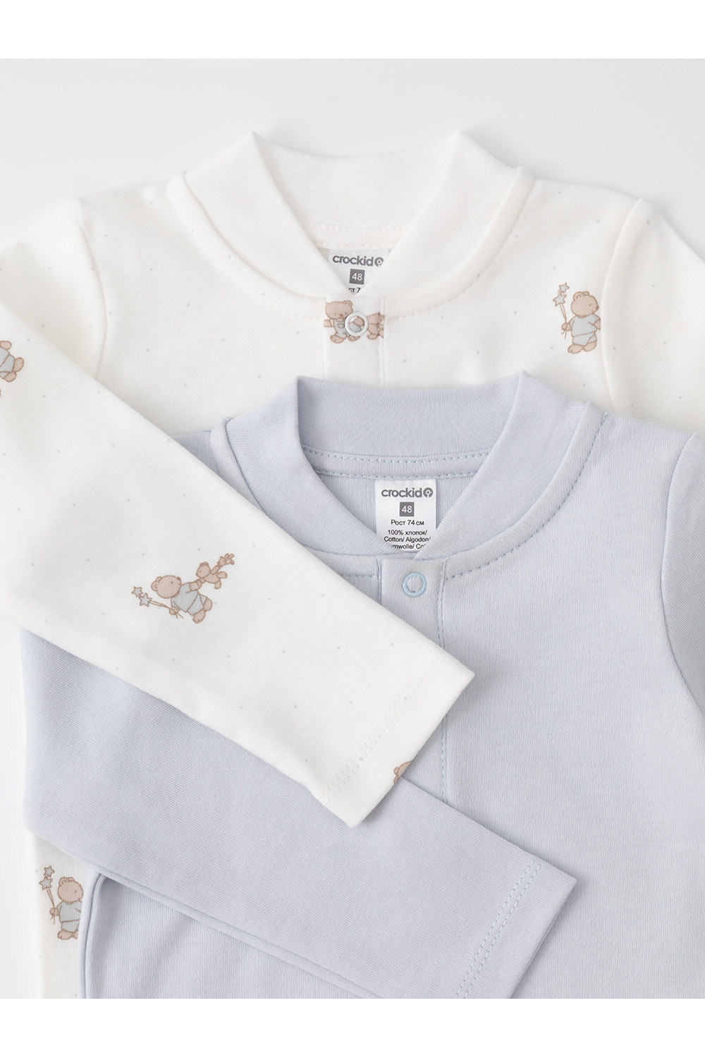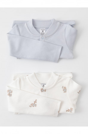 Боди для новорождённых из мягкого эластичного трикотажа, произведённого из натурального хлопка. В упаковке 2 штуки. Застёгиваются на кнопки спереди и по низу изделий. Оригинальная набивка выполнена из стойких гипоаллергенных текстильных красителей. Все трикотажные полотна производятся в соответствии с нормами швейцарского сертификата ЭкоТекс.