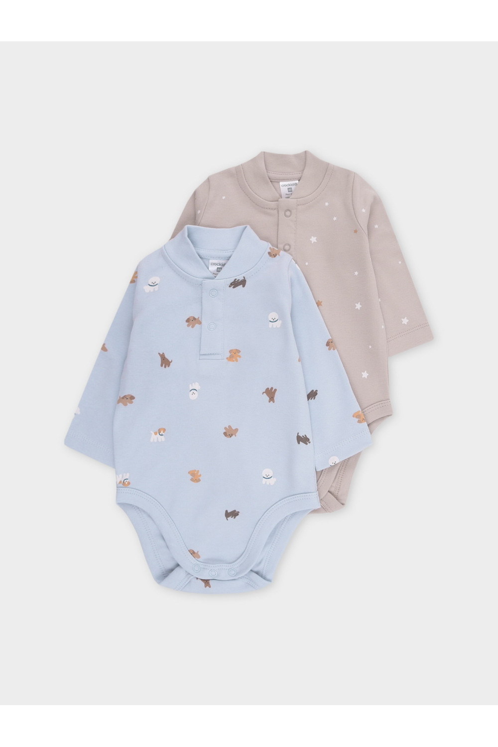 Боди для новорождённых из мягкого эластичного трикотажа, произведённого из натурального хлопка. В упаковке 2 штуки. Застёгиваются на кнопки спереди и по низу изделий. Оригинальная набивка выполнена из стойких гипоаллергенных текстильных красителей. Все трикотажные полотна производятся в соответствии с нормами Швейцарского сертификата ЭкоТекс.