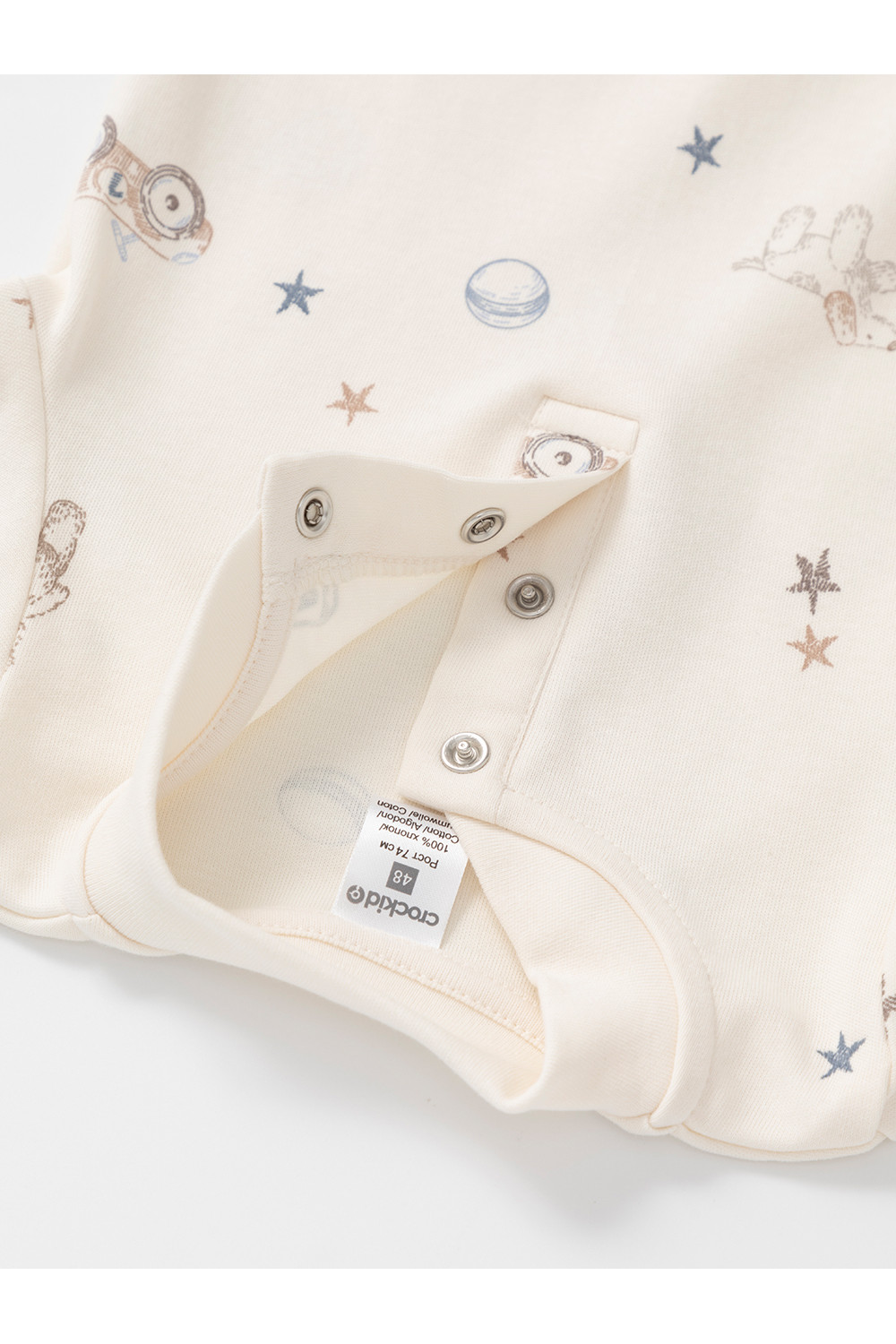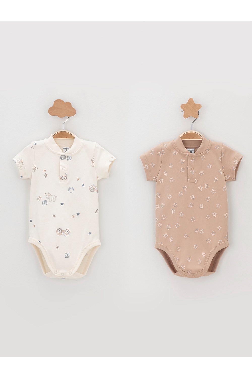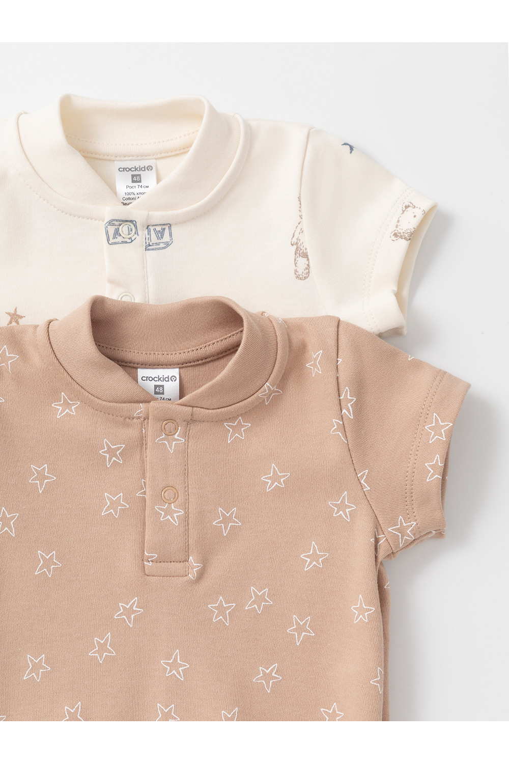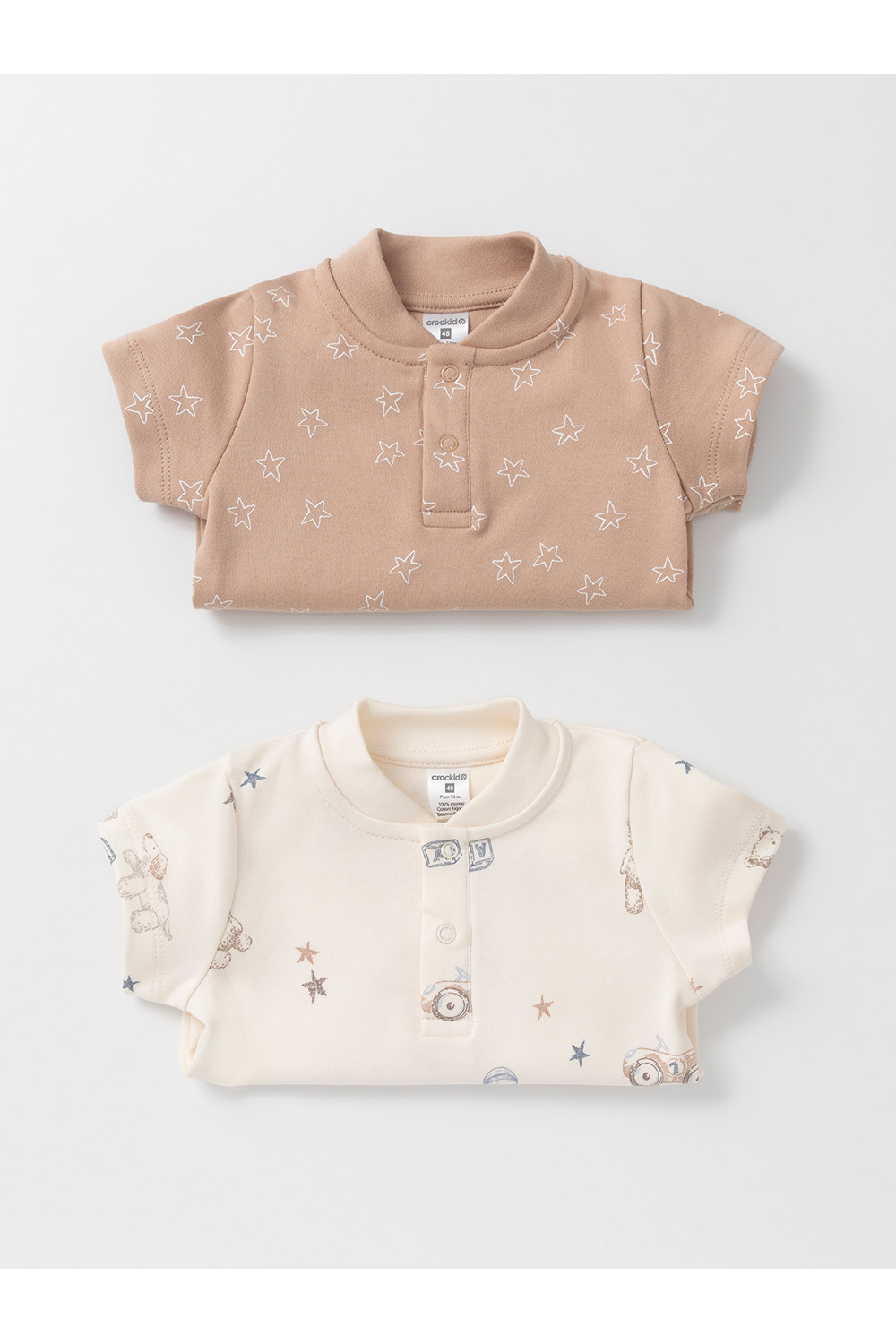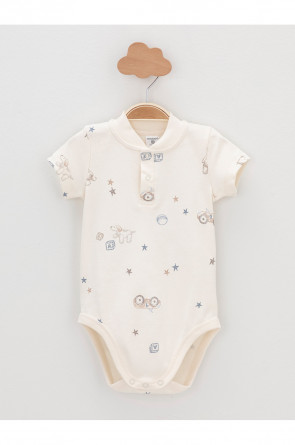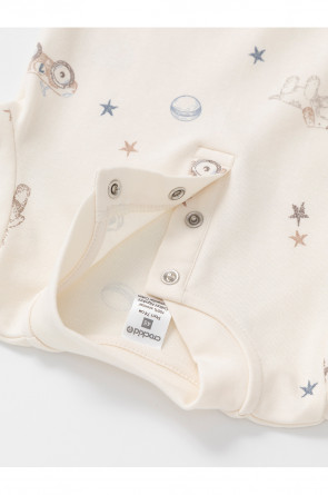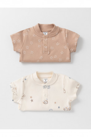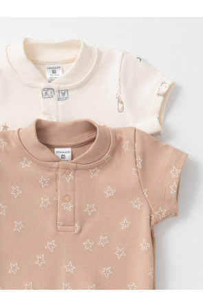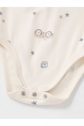 Боди для новорождённых из мягкого эластичного трикотажа, произведённого из натурального хлопка. В упаковке 2 штуки. Застёгиваются на кнопки спереди и по низу изделий. Оригинальная набивка выполнена из стойких гипоаллергенных текстильных красителей. Все трикотажные полотна производятся в соответствии с нормами швейцарского сертификата ЭкоТекс.