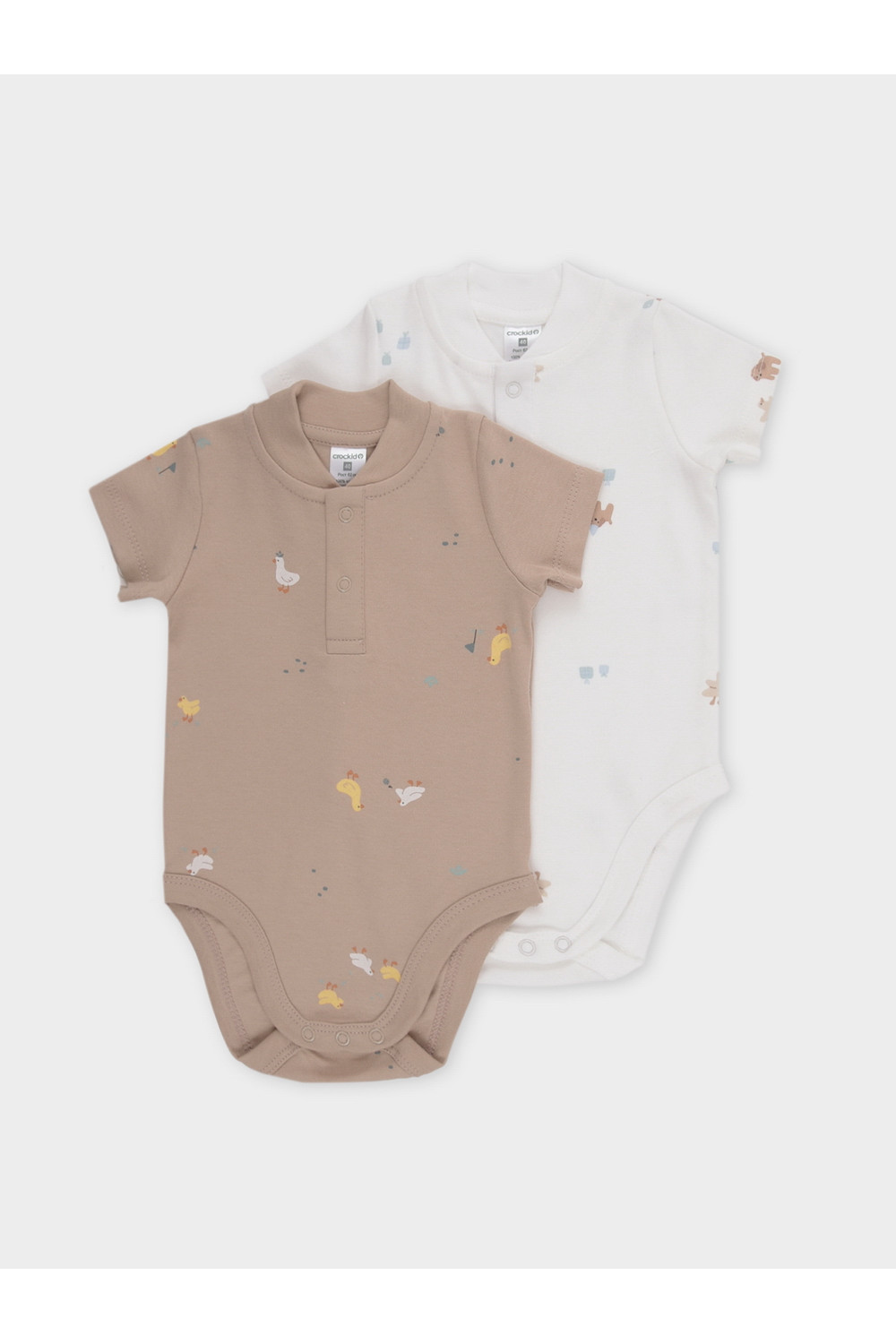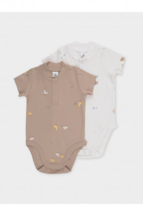 Боди для новорождённых из мягкого эластичного трикотажа, произведённого из натурального хлопка. В упаковке 2 штуки. Застёгиваются на кнопки спереди и по низу изделий. Оригинальная набивка выполнена из стойких гипоаллергенных текстильных красителей. Все трикотажные полотна производятся в соответствии с нормами Швейцарского сертификата ЭкоТекс.