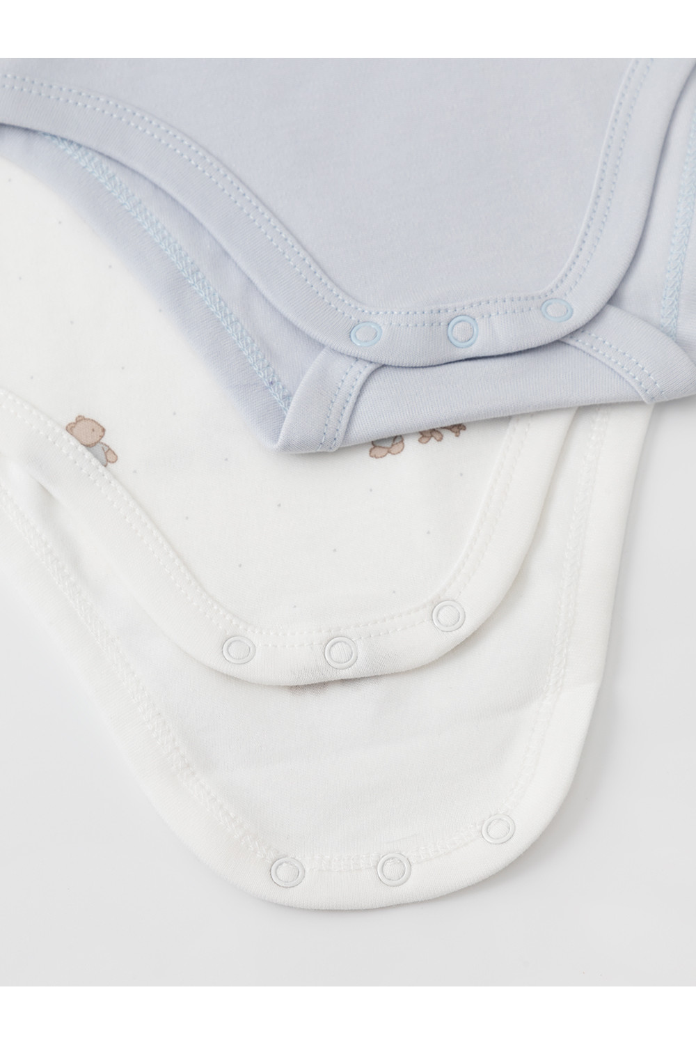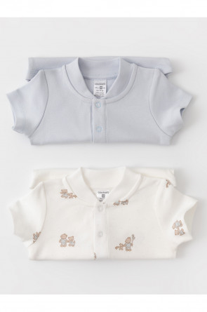 Боди для новорождённых из мягкого эластичного трикотажа, произведённого из натурального хлопка. В упаковке 2 штуки. Застёгиваются на кнопки спереди и по низу изделий. Оригинальная набивка выполнена из стойких гипоаллергенных текстильных красителей. Все трикотажные полотна производятся в соответствии с нормами швейцарского сертификата ЭкоТекс.