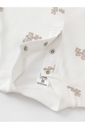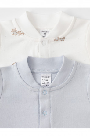 Боди для новорождённых из мягкого эластичного трикотажа, произведённого из натурального хлопка. В упаковке 2 штуки. Застёгиваются на кнопки спереди и по низу изделий. Оригинальная набивка выполнена из стойких гипоаллергенных текстильных красителей. Все трикотажные полотна производятся в соответствии с нормами швейцарского сертификата ЭкоТекс.