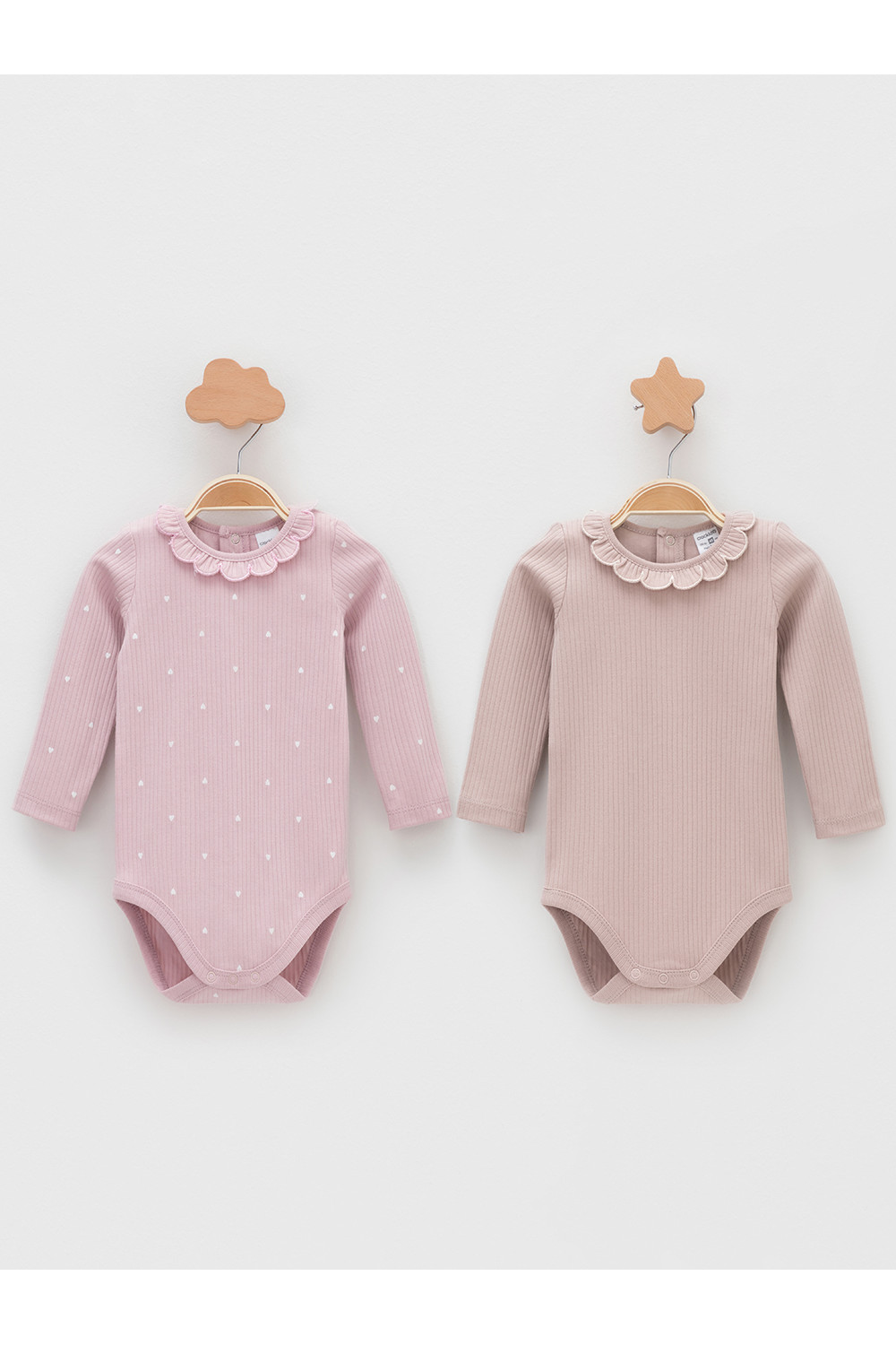 Боди для новорождённых из мягкого эластичного трикотажа, произведённого из натурального хлопка. В упаковке 2 штуки. Застёгиваются на кнопки на спинке и по низу изделий. Все трикотажные полотна производятся в соответствии с нормами швейцарского сертификата ЭкоТекс.