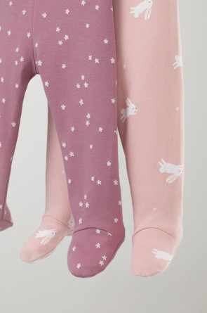 Ползунки для новорождённых из мягкого эластичного трикотажа интерлок, произведённого из натурального хлопка. В упаковке 2 штуки. Пояс на резинке. Оригинальная набивка выполнена из стойких гипоаллергенных текстильных красителей. Все трикотажные полотна производятся в соответствии с нормами Швейцарского сертификата ЭкоТекс.