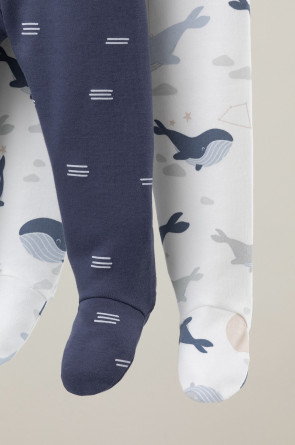 Ползунки для новорождённых из мягкого эластичного трикотажа интерлок, произведённого из натурального хлопка. В упаковке 2 штуки. Пояс на резинке. Оригинальная набивка выполнена из стойких гипоаллергенных текстильных красителей. Все трикотажные полотна производятся в соответствии с нормами Швейцарского сертификата ЭкоТекс.