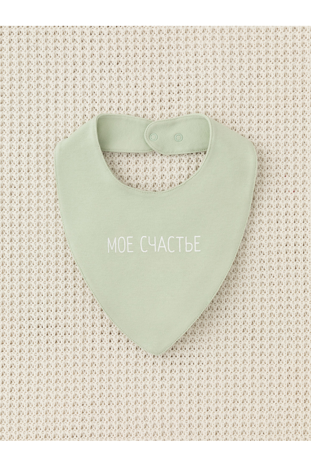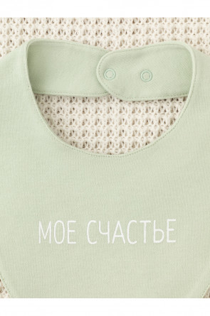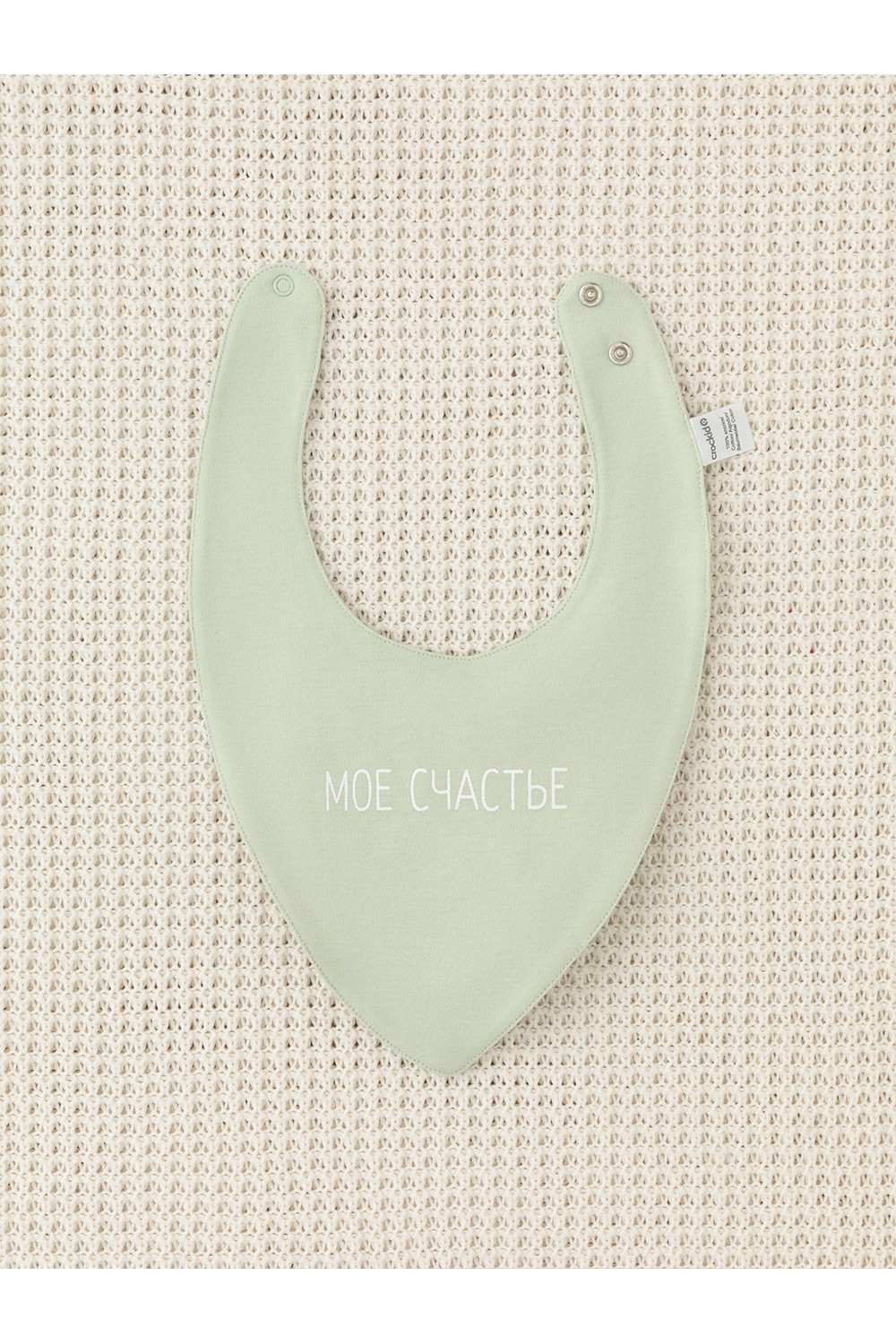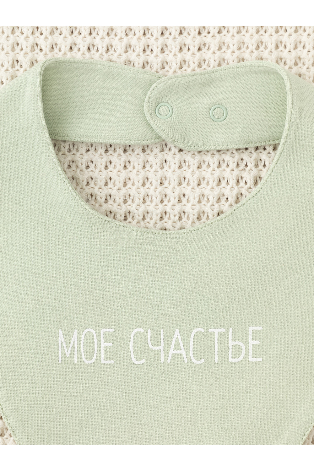 Нагрудник для новорождённых из мягкого эластичного трикотажа интерлок, произведённого из натурального хлопка. Застёгивается на кнопки. Украшен принтом. Все трикотажные полотна производятся в соответствии с нормами Швейцарского сертификата ЭкоТекс.