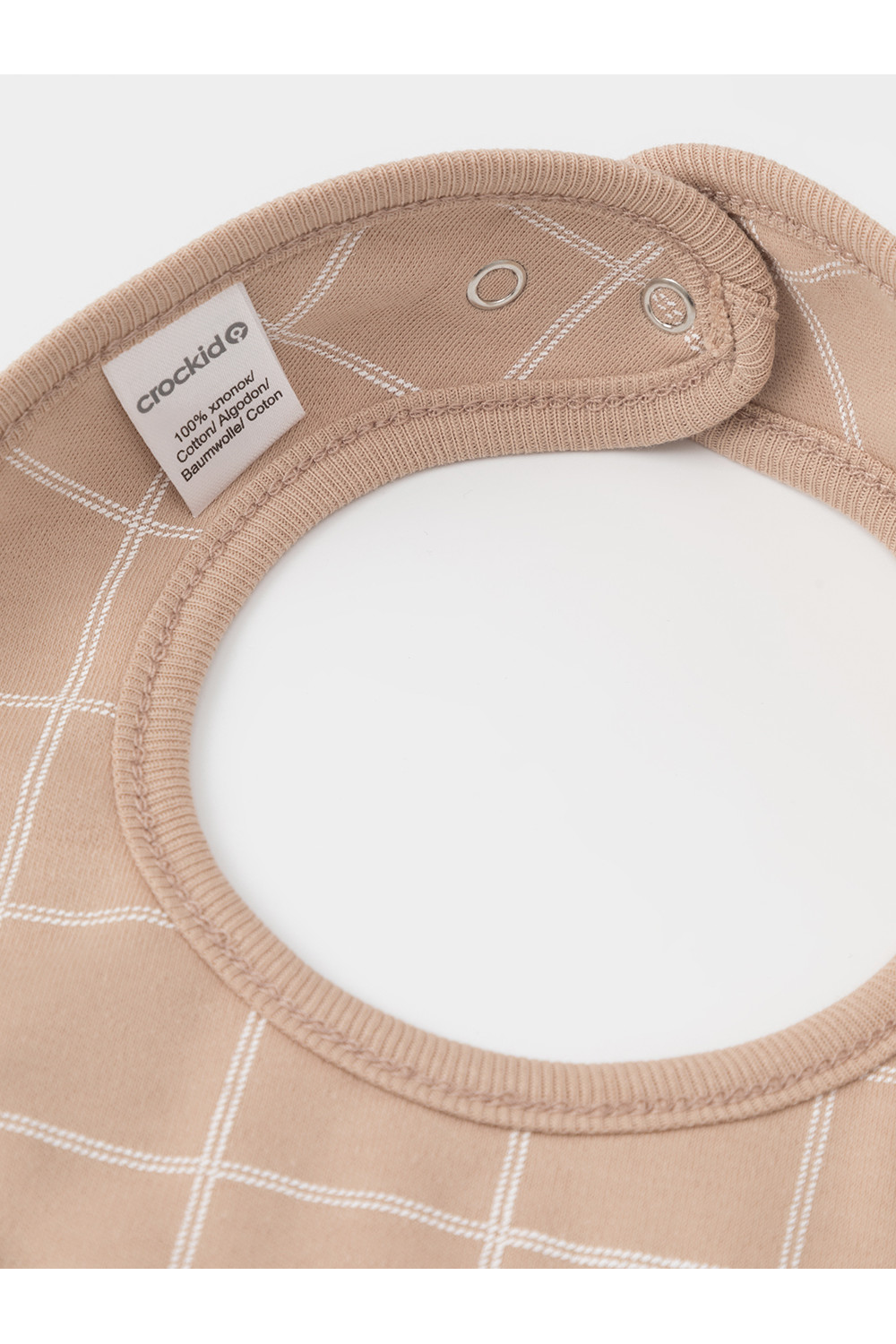 Нагрудник для новорождённых из мягкого эластичного трикотажа интерлок, произведённого из натурального хлопка. Застёгивается на кнопки. Все трикотажные полотна производятся в соответствии с нормами швейцарского сертификата ЭкоТекс.
