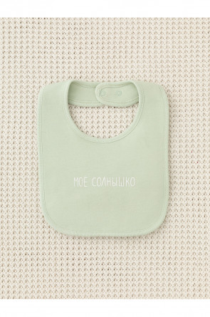 Нагрудник для новорождённых из мягкого эластичного трикотажа интерлок, произведённого из натурального хлопка. Застёгивается на кнопки. Украшен принтом. Все трикотажные полотна производятся в соответствии с нормами Швейцарского сертификата ЭкоТекс.