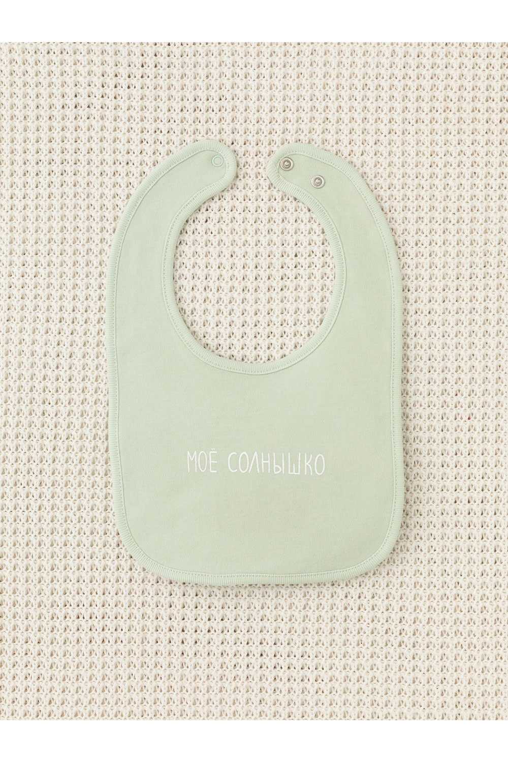 Нагрудник для новорождённых из мягкого эластичного трикотажа интерлок, произведённого из натурального хлопка. Застёгивается на кнопки. Украшен принтом. Все трикотажные полотна производятся в соответствии с нормами Швейцарского сертификата ЭкоТекс.