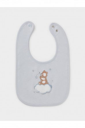 Нагрудник для новорождённых из мягкого эластичного трикотажа интерлок, произведённого из натурального хлопка. Застёгивается на кнопки. Украшен принтом. Все трикотажные полотна производятся в соответствии с нормами швейцарского сертификата ЭкоТекс.