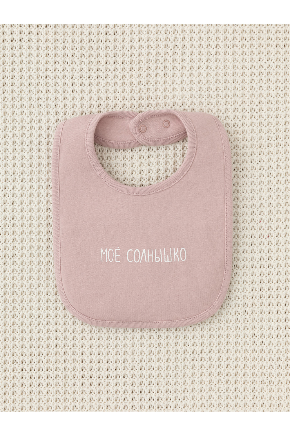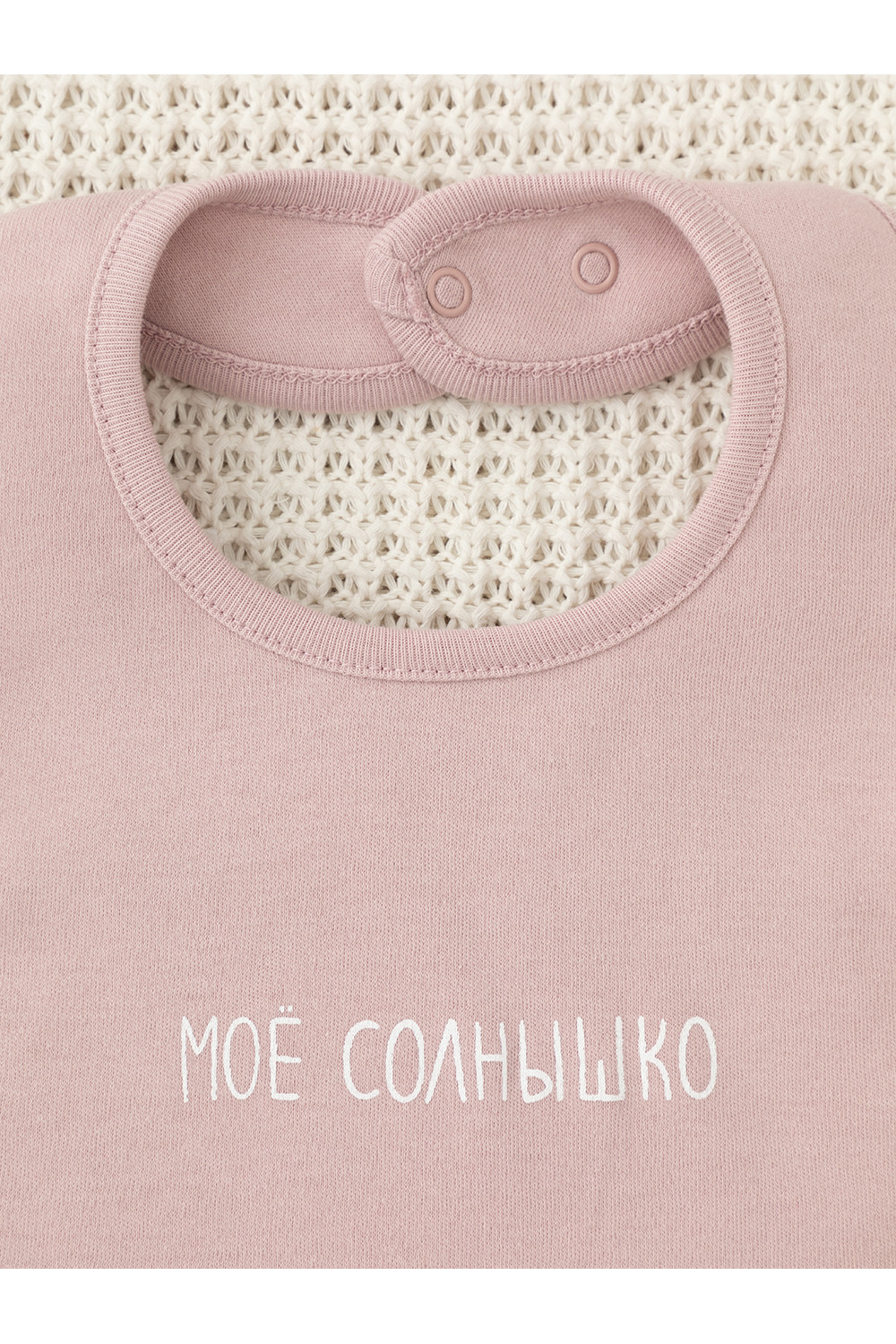 Нагрудник для новорождённых из мягкого эластичного трикотажа интерлок, произведённого из натурального хлопка. Застёгивается на кнопки. Украшен принтом. Все трикотажные полотна производятся в соответствии с нормами Швейцарского сертификата ЭкоТекс.