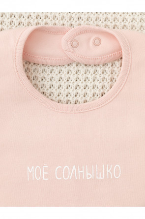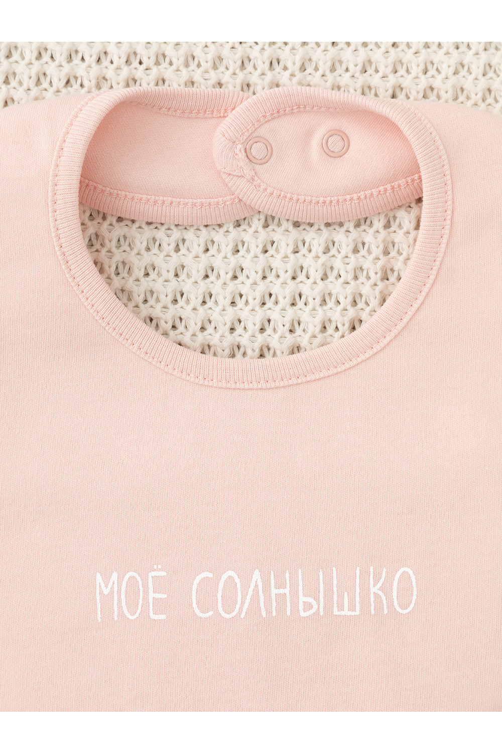 Нагрудник для новорождённых из мягкого эластичного трикотажа интерлок, произведённого из натурального хлопка. Застёгивается на кнопки. Украшен принтом. Все трикотажные полотна производятся в соответствии с нормами Швейцарского сертификата ЭкоТекс.