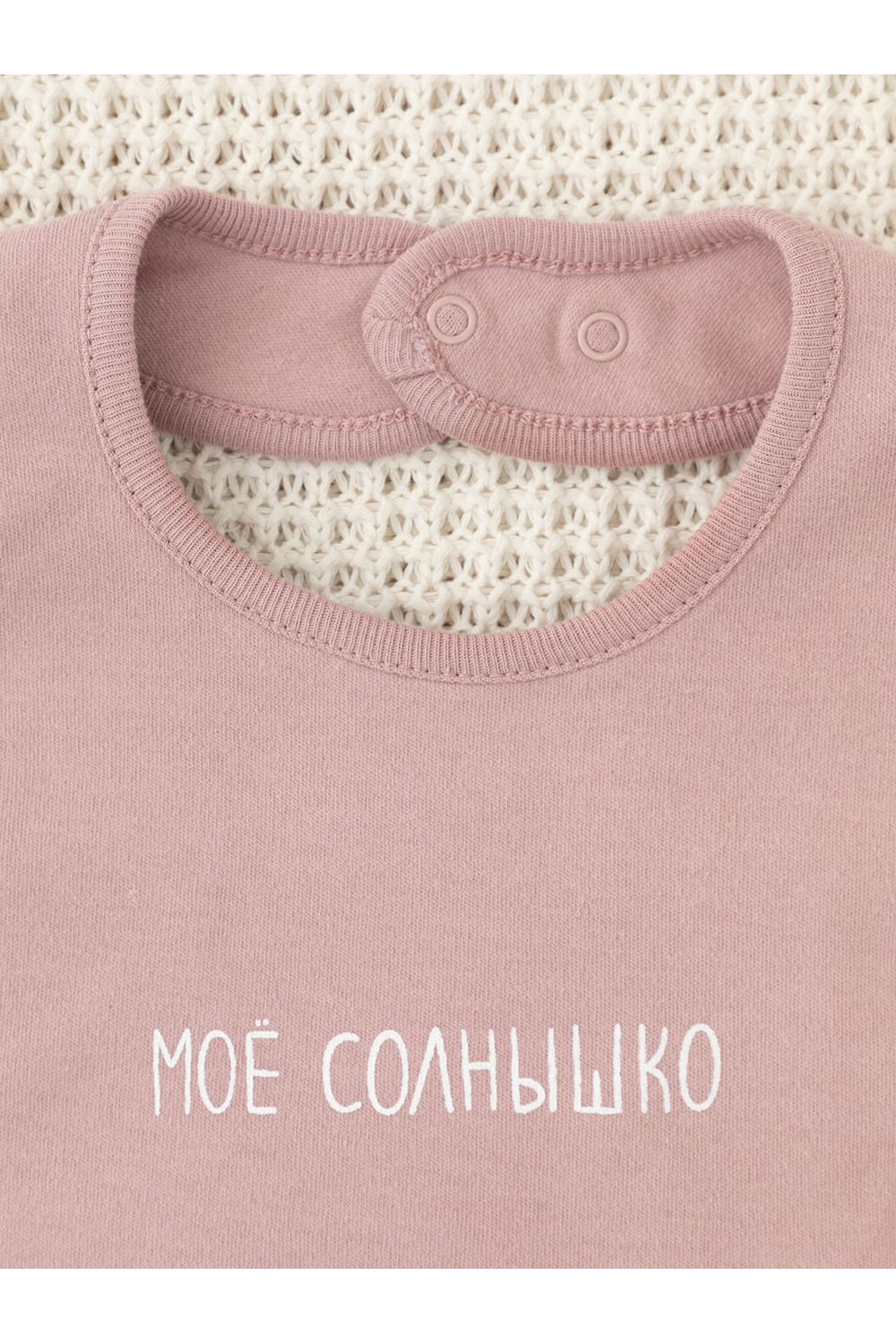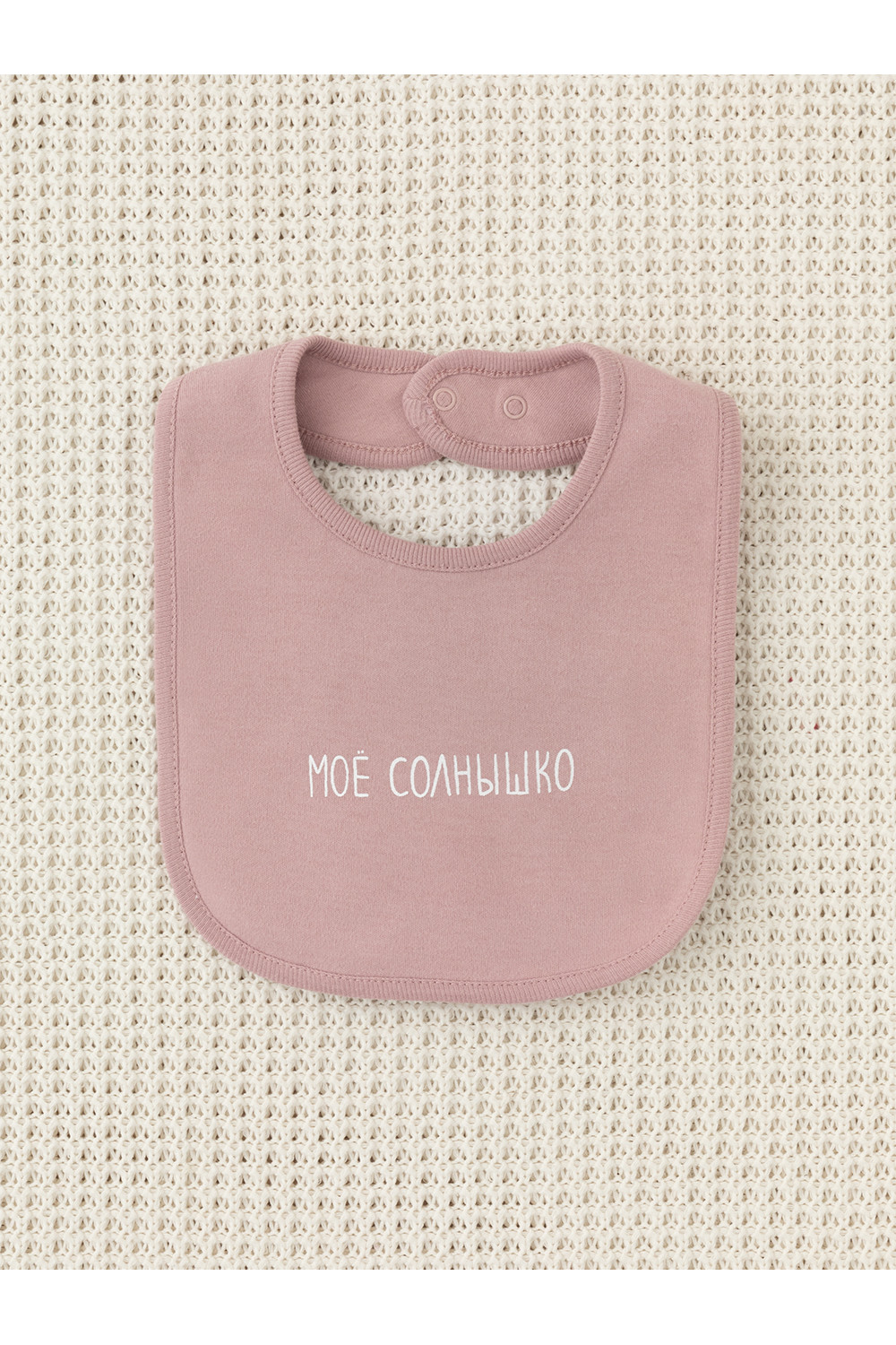 Нагрудник для новорождённых из мягкого эластичного трикотажа интерлок, произведённого из натурального хлопка. Застёгивается на кнопки. Украшен принтом. Все трикотажные полотна производятся в соответствии с нормами Швейцарского сертификата ЭкоТекс.