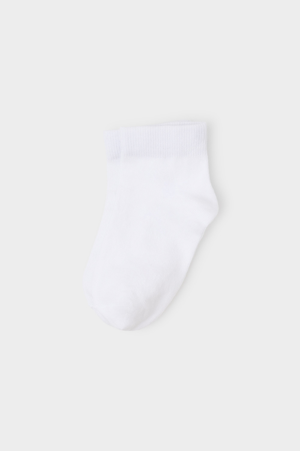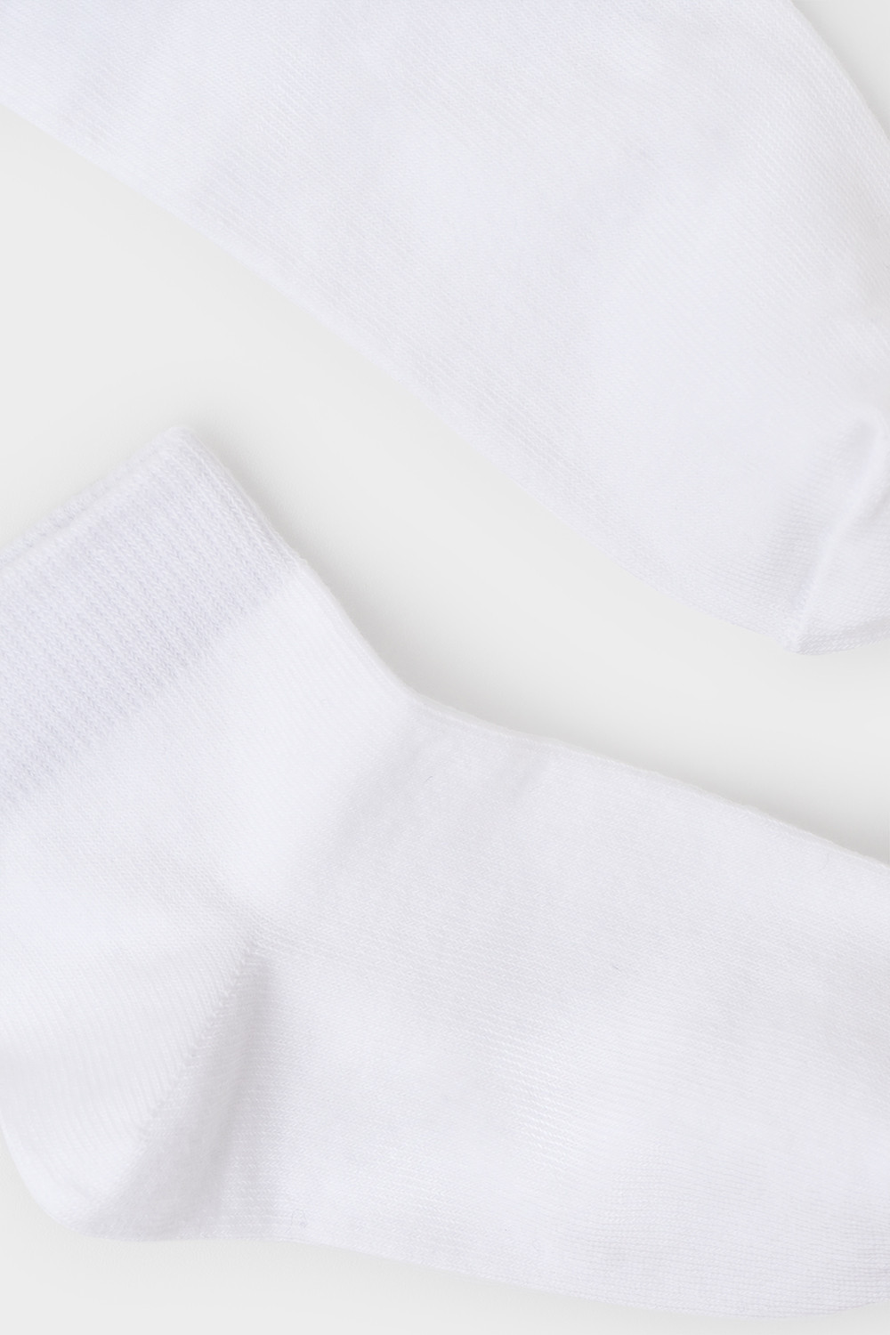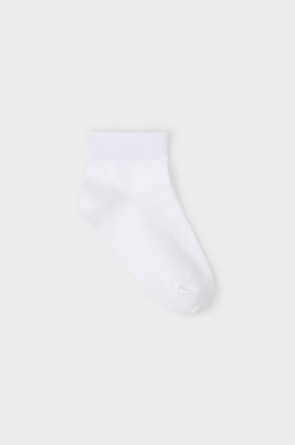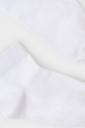 Короткие белые носки без рисунка. Эластичная резинка по верхнему краю.