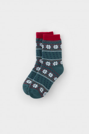Тёплые махровые носки с формованной пяткой. Украшены рисунком. Эластичная резинка по верхнему краю. Изделие сохраняет форму и стойкий цвет после многочисленных стирок.