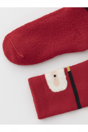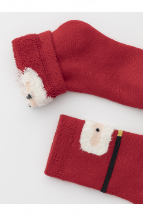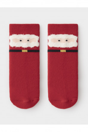 Тёплые махровые носки с формованной пяткой и эластичной резинкой по краю. Украшены рисунком. Отлично подойдут для создания праздничных образов или как дополнение к подарку на Новый год и Рождество. Изделие сохраняет форму и стойкий цвет после многочисленных стирок.