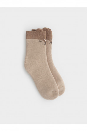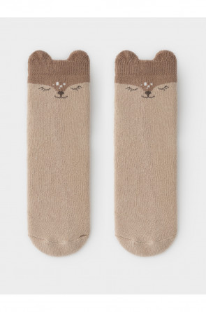 Носки махровые с формованной пяткой и эластичной резинкой по краю. Украшены рисунком и объёмными элементами. Изделие сохраняет форму и стойкий цвет после многочисленных стирок.