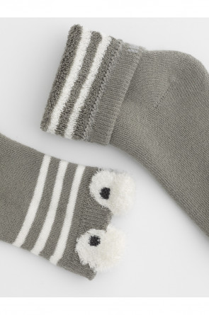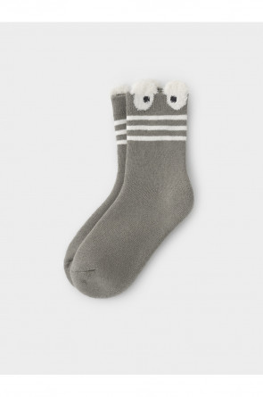 Носки махровые с формованной пяткой и эластичной резинкой по краю.Украшены рисунком с объёмными элементами. Изделие сохраняет форму и стойкий цвет после многочисленных стирок.