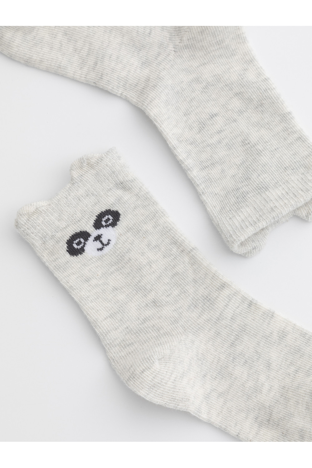 Носки с формованной пяткой и эластичной резинкой по краю. Украшены рисунком и объёмными элементами. Изделие сохраняет форму и стойкий цвет после многочисленных стирок.