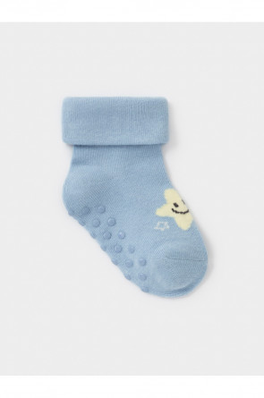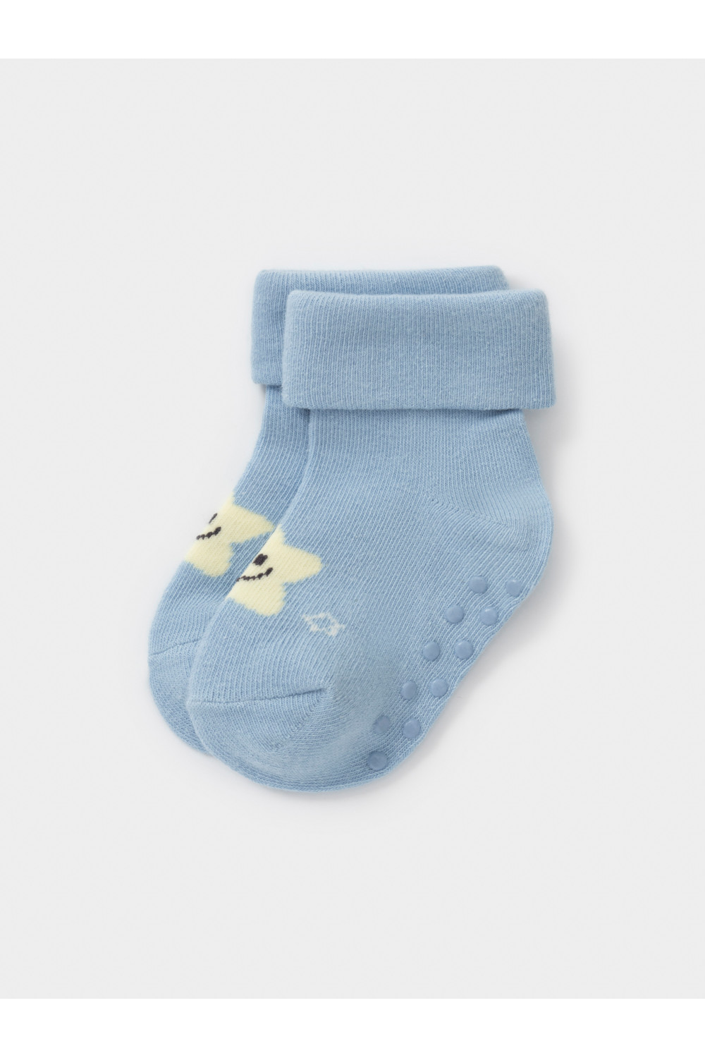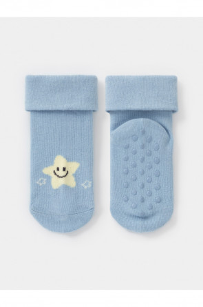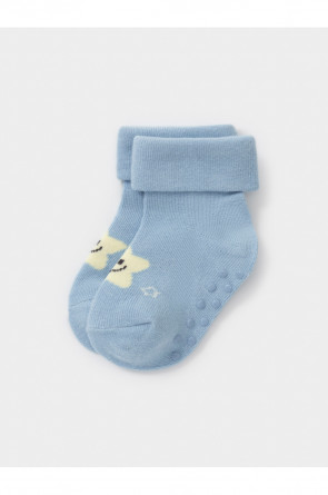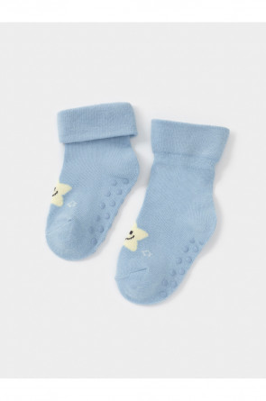Носки детские с формованной пяткой и отворотом. Украшены рисунком. На стопе противоскользящие стопперы. Изделие сохраняет форму и стойкий цвет после многочисленных стирок.