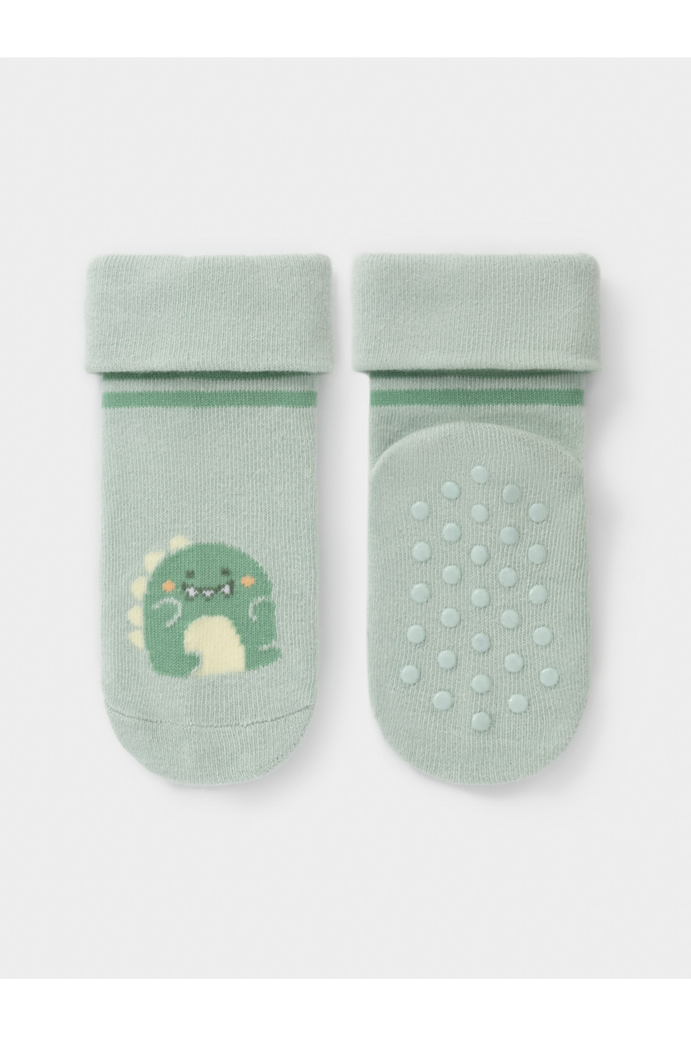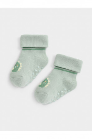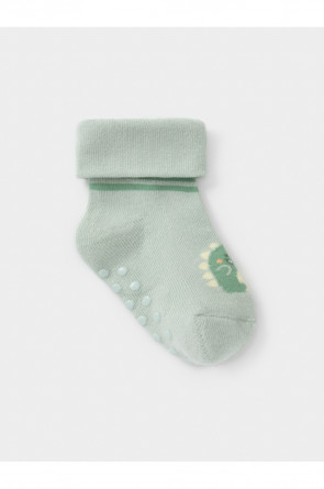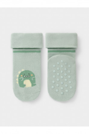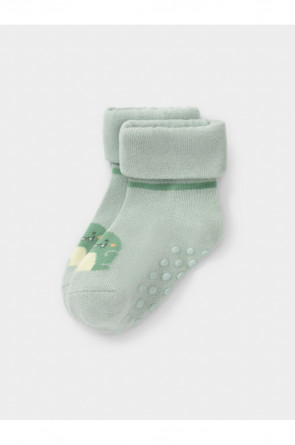 Носки детские с формованной пяткой и отворотом. Украшены рисунком. На стопе противоскользящие стопперы. Изделие сохраняет форму и стойкий цвет после многочисленных стирок.