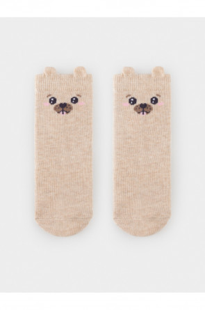 Носки длинные детские с формованной пяткой и эластичной резинкой по краю. Украшены рисунком и объёмными элементами. Изделие сохраняет форму и стойкий цвет после многочисленных стирок.