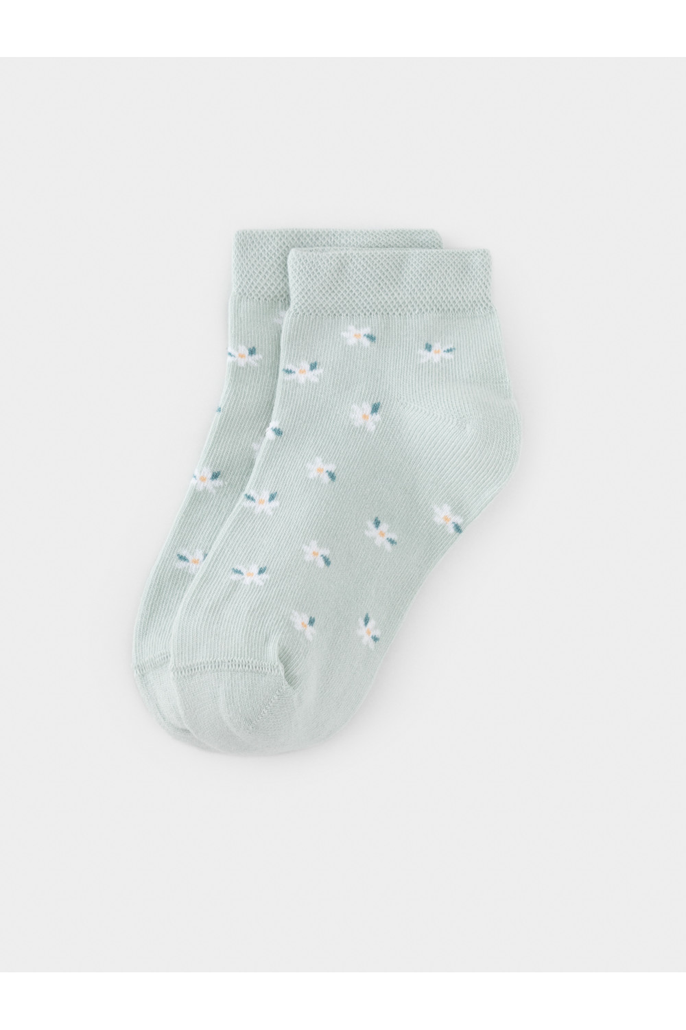 Носки короткие детские с формованной пяткой и эластичной резинкой по краю. Украшены рисунком. Изделие сохраняет форму и стойкий цвет после многочисленных стирок.