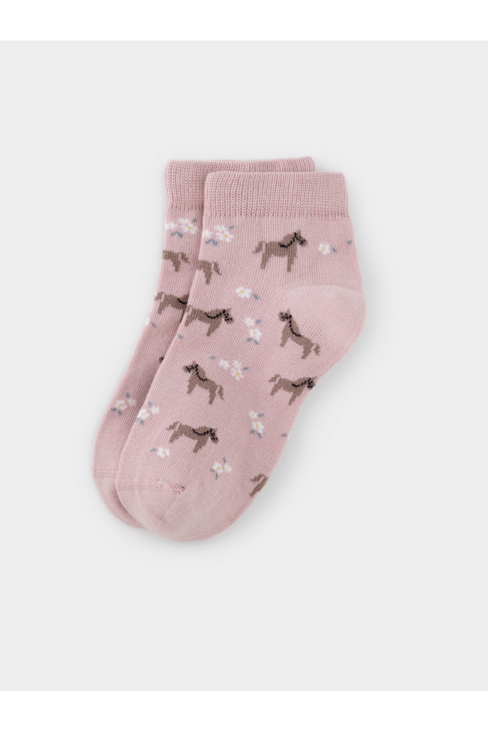 Носки короткие детские с формованной пяткой и эластичной резинкой по краю. Украшены рисунком. Изделие сохраняет форму и стойкий цвет после многочисленных стирок.