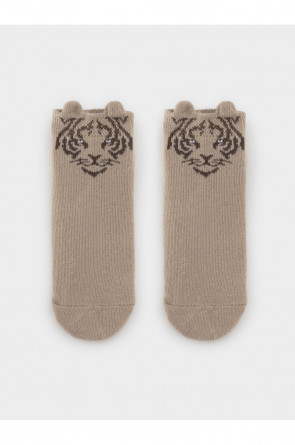 Носки короткие детские с формованной пяткой и эластичной резинкой по краю. Украшены рисунком и объёмными элементами. Изделие сохраняет форму и стойкий цвет после многочисленных стирок.