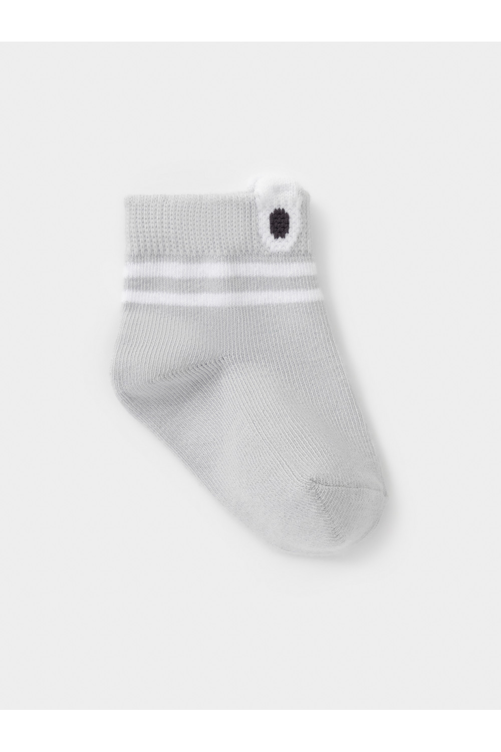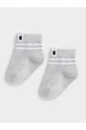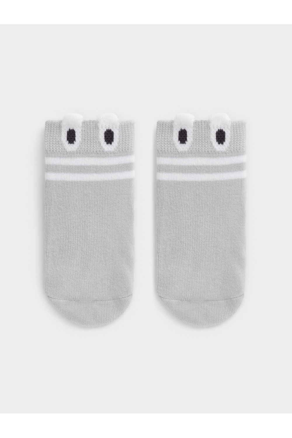 Носки короткие детские с формованной пяткой и эластичной резинкой по краю. Украшены рисунком и объёмными элементами. Изделие сохраняет форму и стойкий цвет после многочисленных стирок.