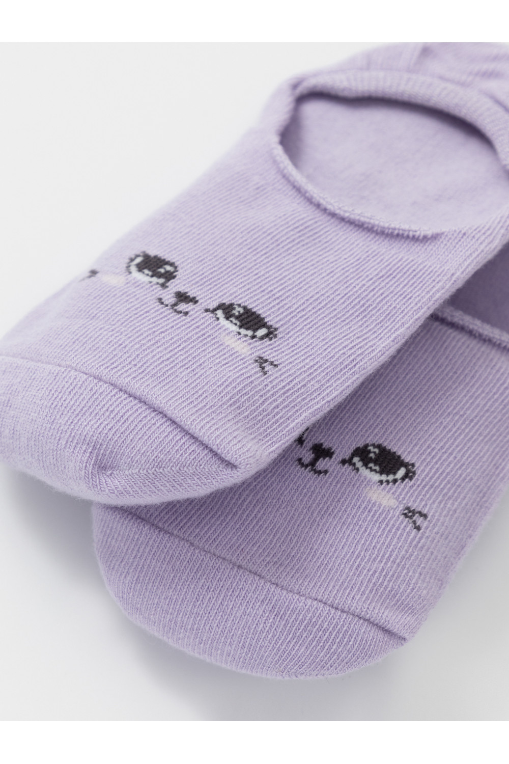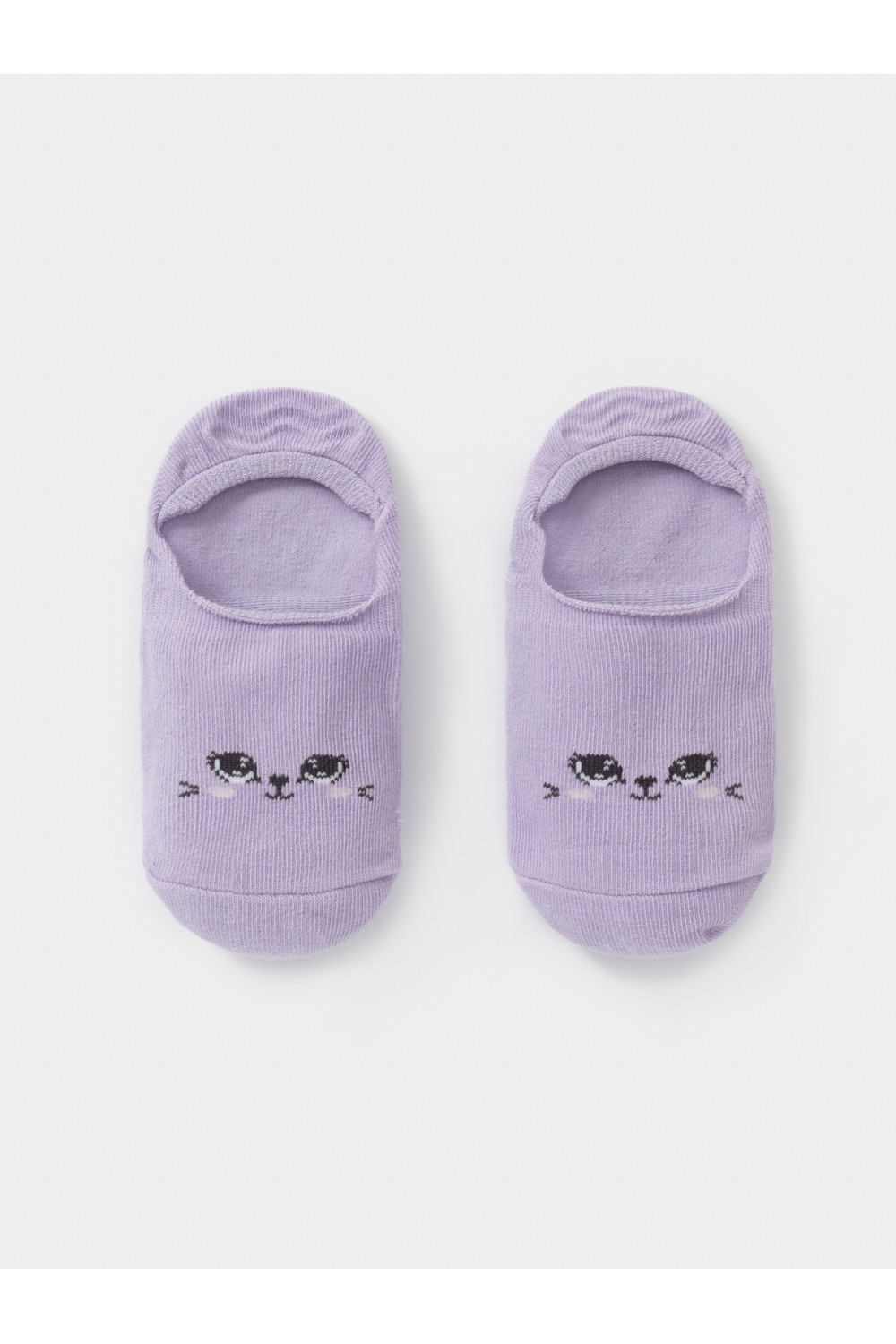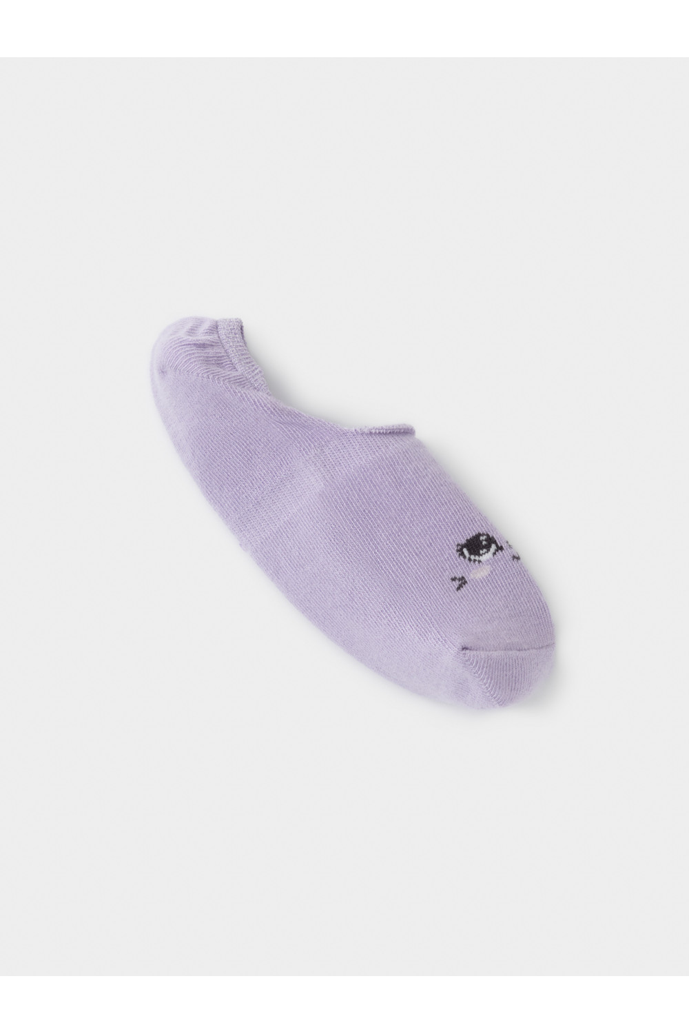 Короткие носки-следки для девочки. Эластичная резинка по краю. Украшены рисунком с глазками.