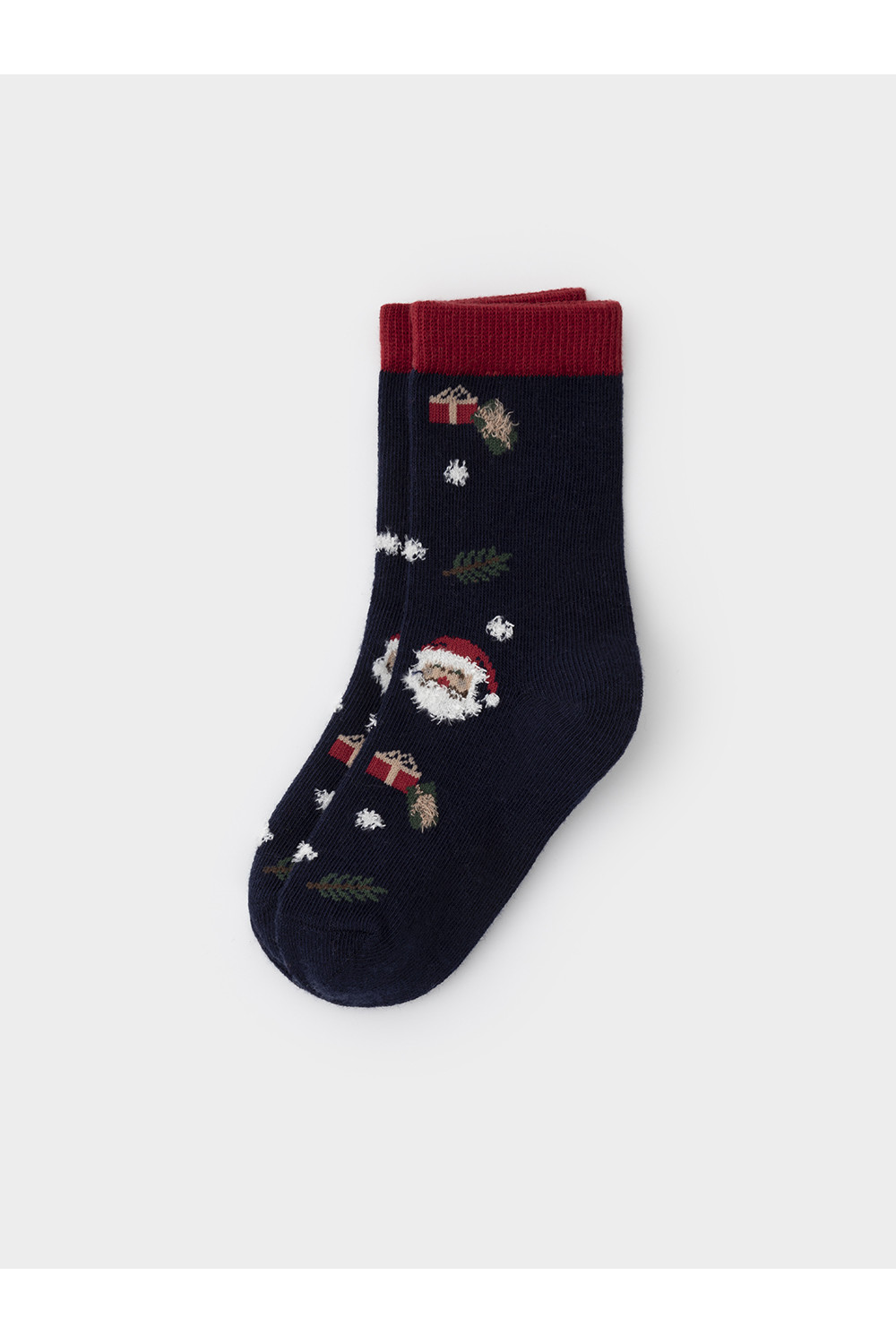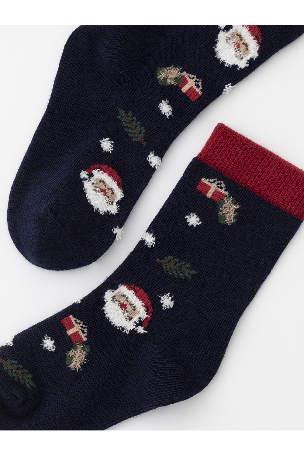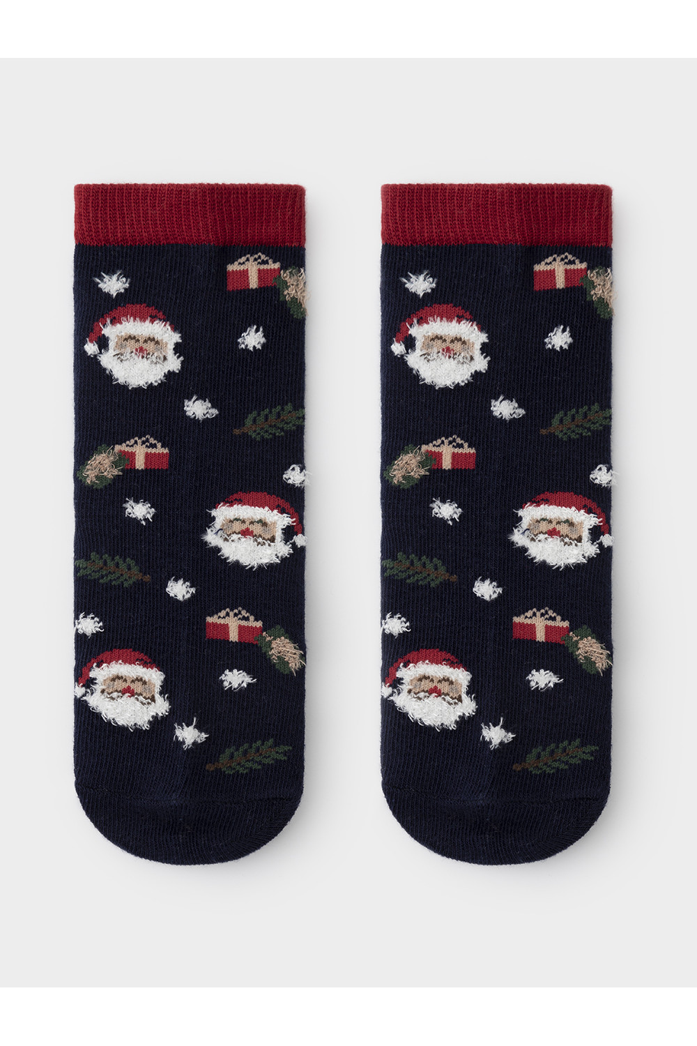 Носки длинные для мальчика с формованной пяткой и эластичной резинкой по краю. Украшены рисунком. Отлично подойдут для создания праздничных образов или как дополнение к подарку на Новый год и Рождество. Изделие сохраняет форму и стойкий цвет после многочисленных стирок.