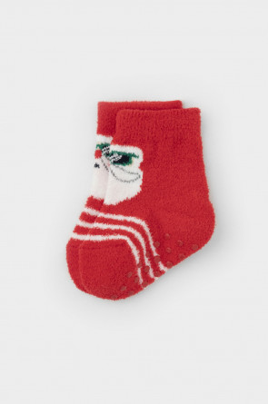Детские трикотажные носки с формованной пяткой. Украшены рисунком. На стопе противоскользящие стопперы. Эластичная резинка по верхнему краю. Изделие сохраняет форму и стойкий цвет после многочисленных стирок.