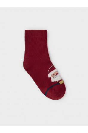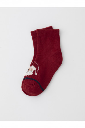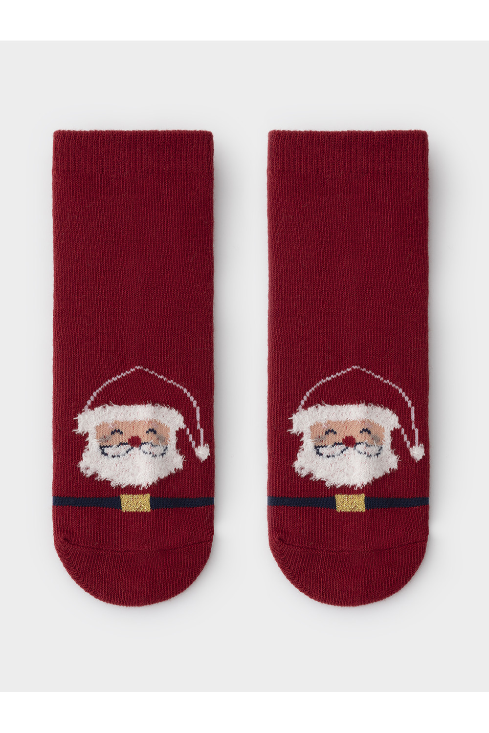 Носки короткие детские с формованной пяткой и эластичной резинкой по краю. Украшены рисунком. Отлично подойдут для создания праздничных образов или как дополнение к подарку на Новый год и Рождество. Изделие сохраняет форму и стойкий цвет после многочисленных стирок.