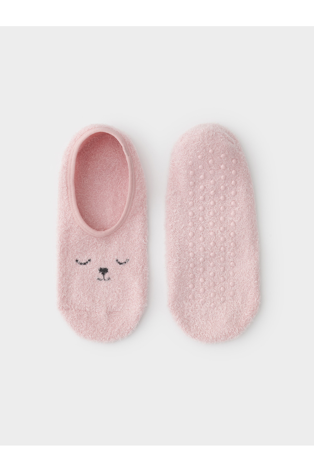 Тёплые следки для девочки с формованной пяткой и эластичной резинкой по краю. На подошве резиновые стопперы. Украшены рисунком. Изделие сохраняет форму и стойкий цвет после многочисленных стирок.