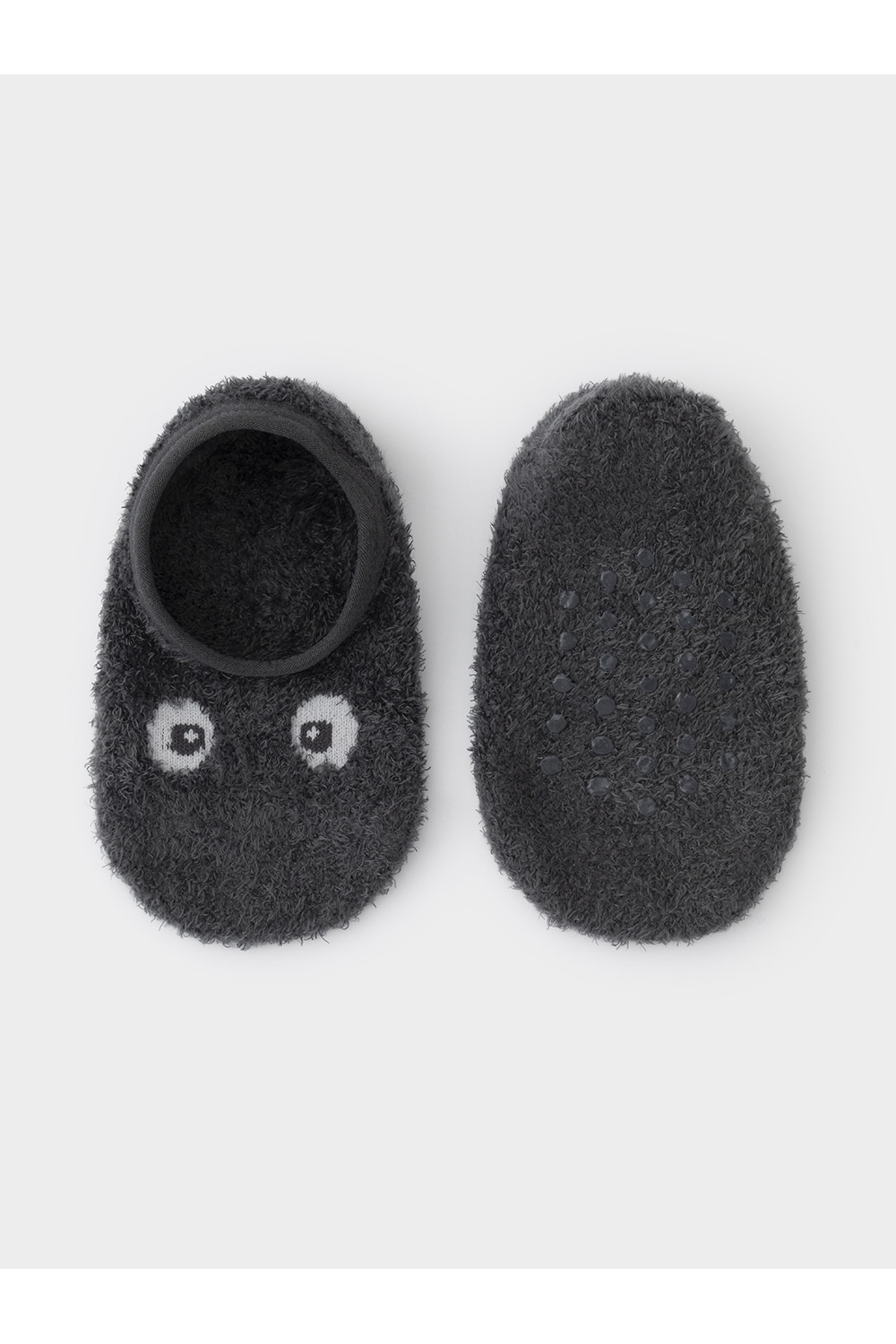 Тёплые следки для мальчика с формованной пяткой и эластичной резинкой по краю. На подошве резиновые стопперы. Украшены пушистым рисунком. Изделие сохраняет форму и стойкий цвет после многочисленных стирок.