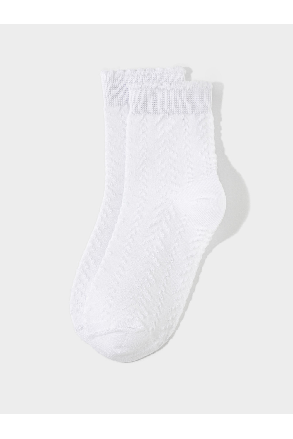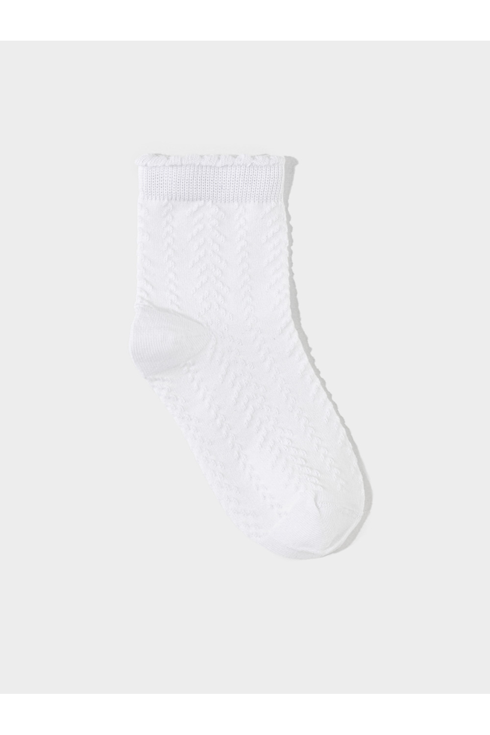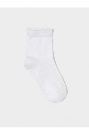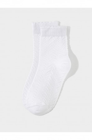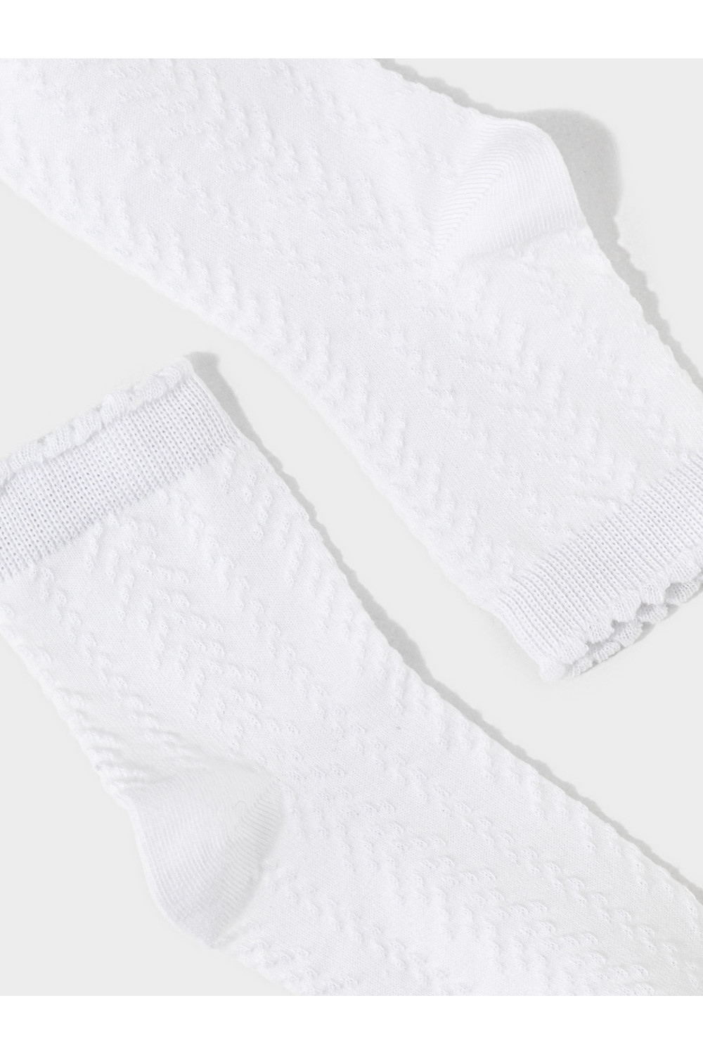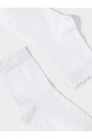 Носки длинные для девочки с формованной пяткой и эластичной резинкой по краю. Связаны ажурным узором.