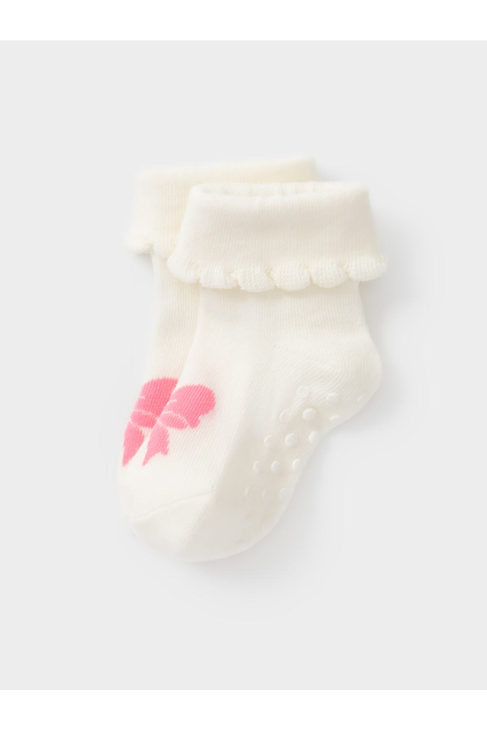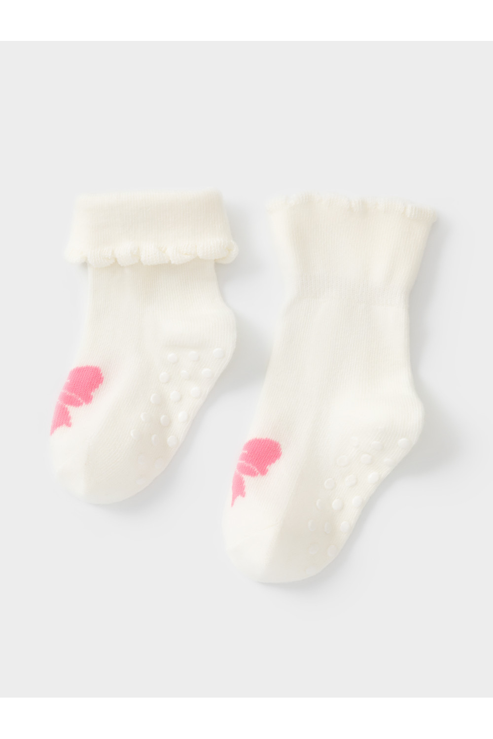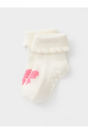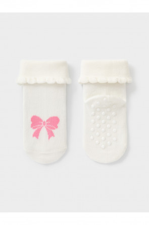 Носки детские с формованной пяткой и отворотом. Украшены рисунком. На стопе противоскользящие стопперы. Изделие сохраняет форму и стойкий цвет после многочисленных стирок.