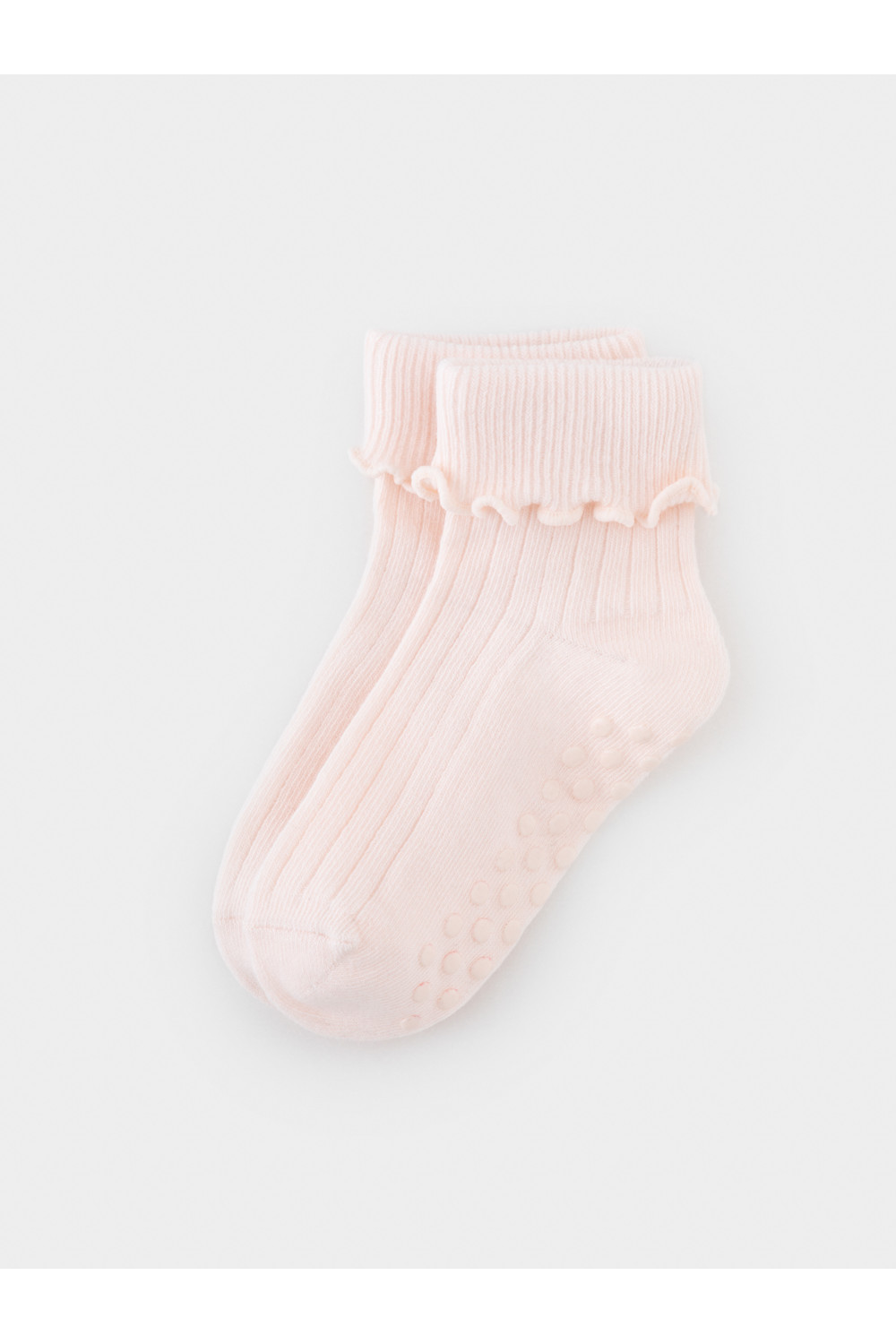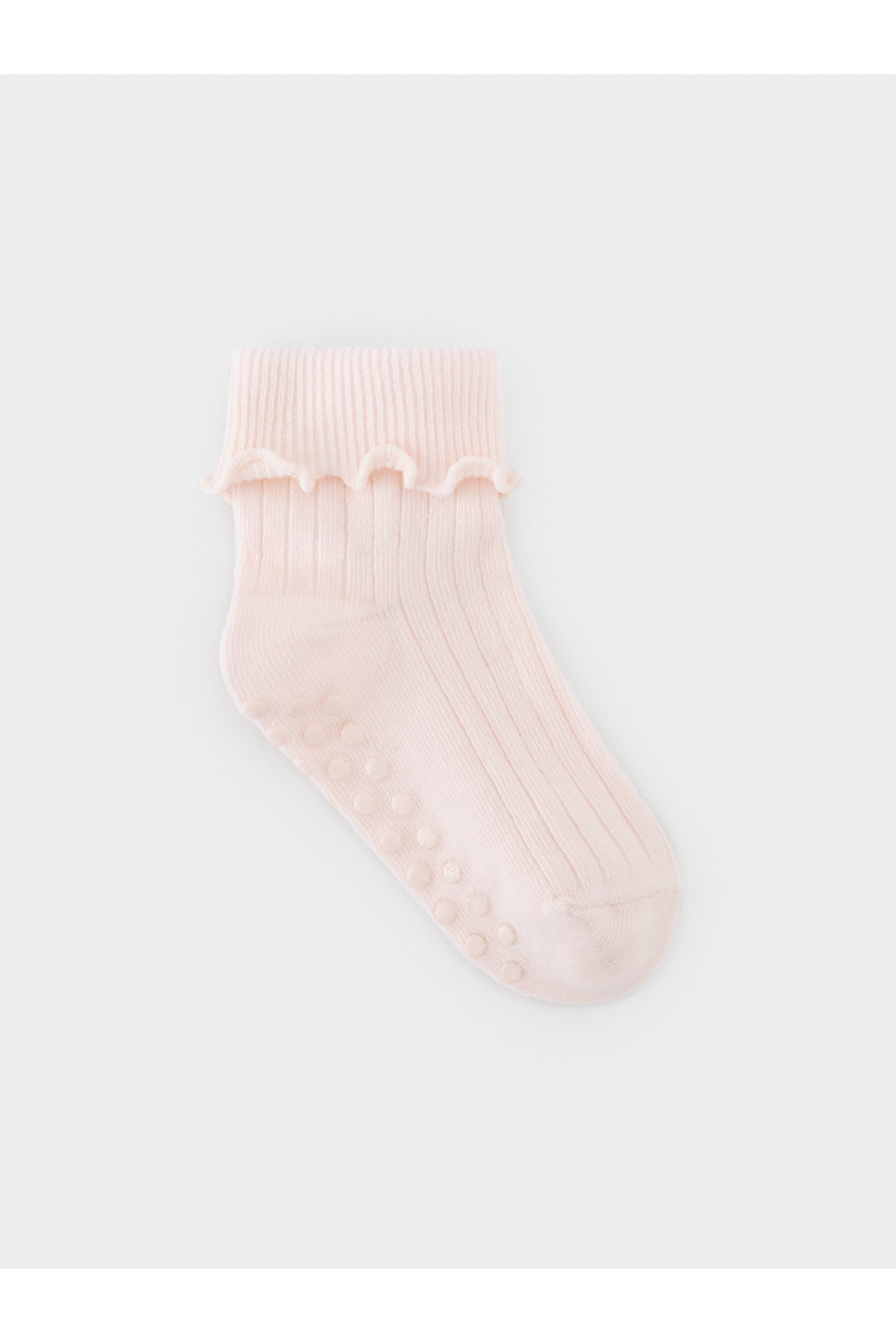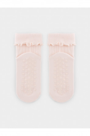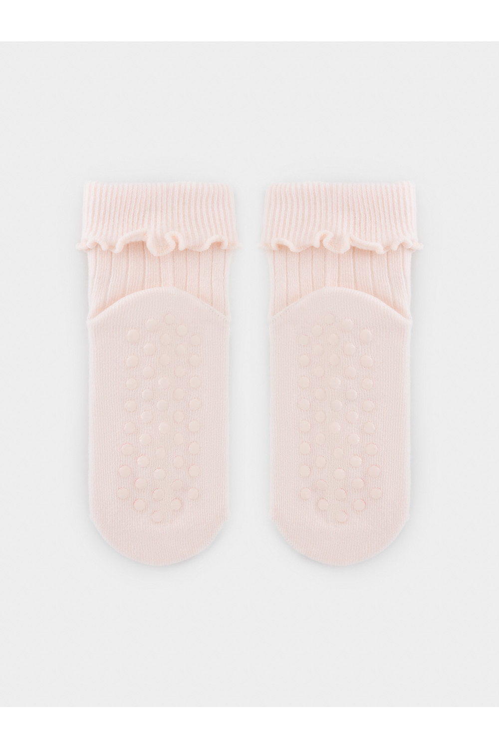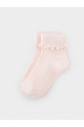 Носки детские однотонные с формованной пяткой и отворотом. На стопе противоскользящие стопперы. Изделие сохраняет форму и стойкий цвет после многочисленных стирок.