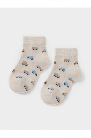 Носки короткие детские с формованной пяткой и эластичной резинкой по краю. Украшены рисунком. Изделие сохраняет форму и стойкий цвет после многочисленных стирок.