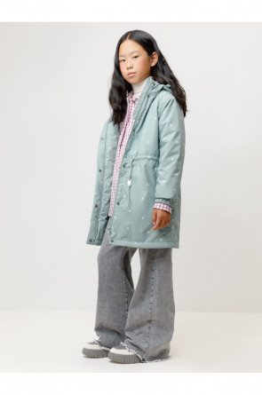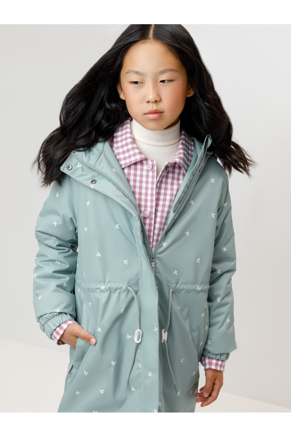 Демисезонное пальто для девочки с утеплителем SEE®: 120 г/м2. Выполнено из мембранной ткани с дополнительной тефлоновой обработкой. Данный вид обработки предохраняет изделие от загрязнения и лучше отводит влагу. Подклад из 100% полиэстера. У изделия предусмотрена защита подбородка. Несъемный капюшон имеет утягивающий шнур со стопперами. На рукавах эластичные манжеты. На талии регулирующая утяжка со стопперами. Во всех изделиях верхнего ассортимента для безопасности ребенка предусмотрены светоотражающие элементы.