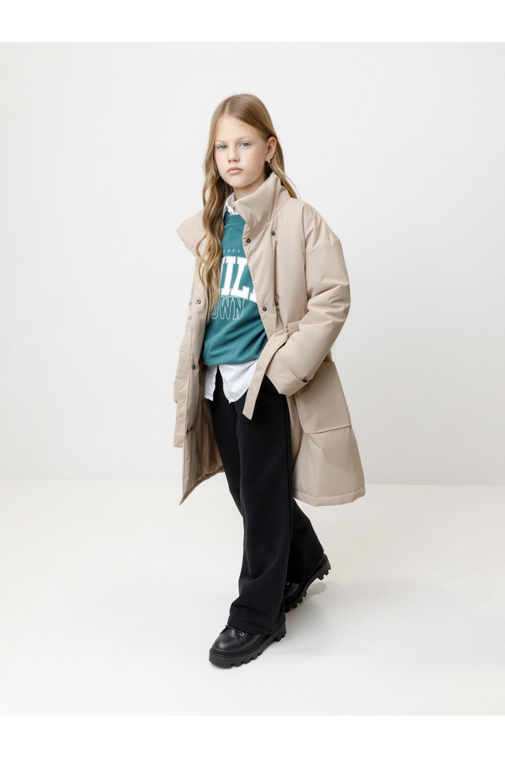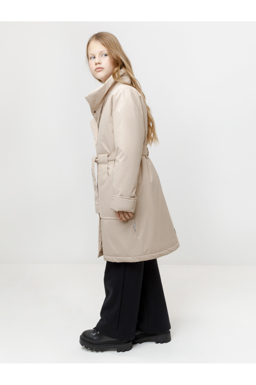 Пальто для девочки с утеплителем Fellex®: 120 г/м2. Выполнено из мембранной ткани с дополнительной тефлоновой обработкой. Верхняя мембранная ткань 1000/1000 с тефлоновым покрытием отталкивает воду и грязь и обладает «дышащими» свойствами. Подкладка выполнена из 100% полиэстера. Изделие имеет удобную застёжку на кнопки и высокий воротник с потайной магнитной кнопкой. Для регулировки по фигуре есть удобный пояс, который вставляется в петли. Отвороты на рукавах выполнены из основной ткани. По бокам два кармана. Во всех изделиях верхнего ассортимента для безопасности ребёнка предусмотрены светоотражающие элементы.